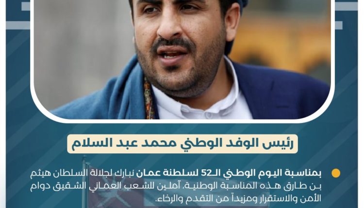 رئيس الوفد الوطني محمد عبدالسلام يهنئ سلطنة عمان بعيدها الوطني