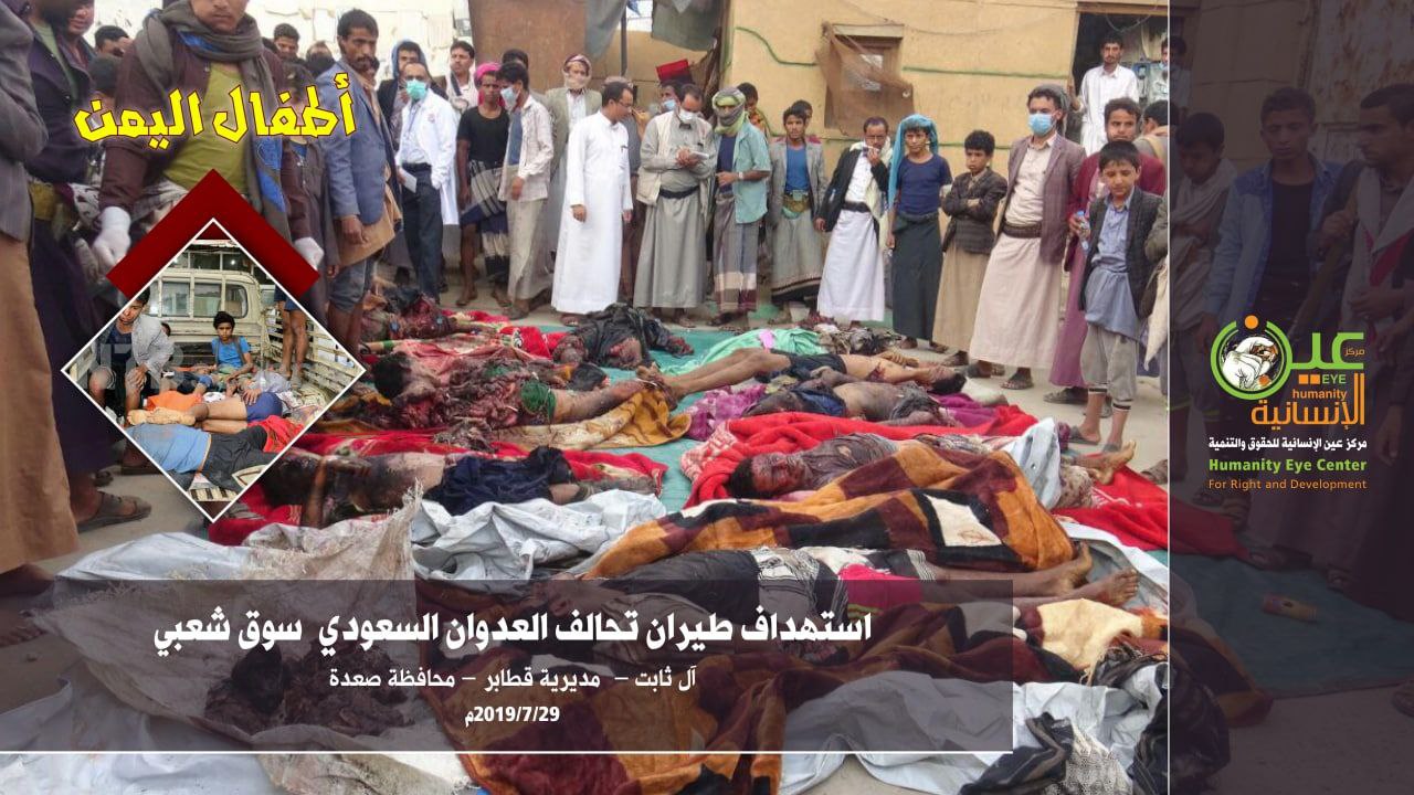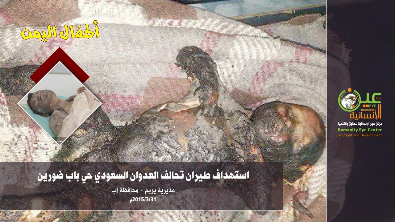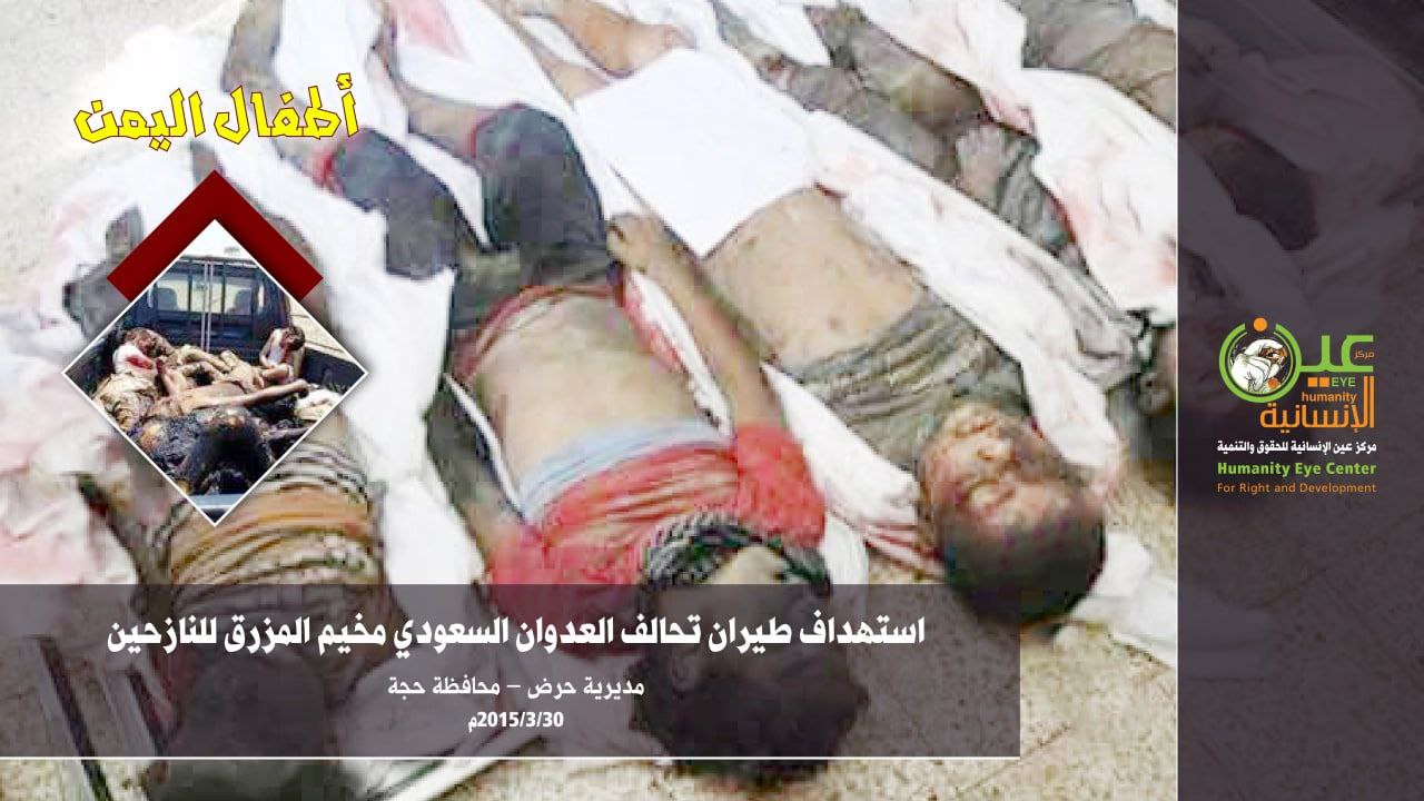وقال المركز إن هـذه الجرائم بحق الأطفـال والجرائم الوحشية الأخرى بحق المدنييـن في اليمن ســتبقى وصمة عار على جبين المجتمع الدولي والمؤسسـات الأممية التي ظلت تنادي بحقوق الإنسان حتى تلاشت أصواتهـا المسيســة أمام الإجرام الوحشي الذي يتعرض لـه الشعب اليمني على مرأى ومسـمع هـذا العالم الذي تحكمه مصالح السياسة وتغيب عنه قيم العدالة وحقوق الإنسـان.
