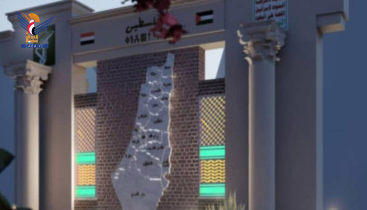 واستمعوا من المهندس الإنسي ومدير إدارة التحسين محمد البشيري، إلى شرح حول مكونات المجسم الرمزي الذي يتضمن خارطة فلسطين، وأسماء المدن، ويتوسط الخريطة عمودان يحملان شعاري الصرخة ومحور المقاومة.
