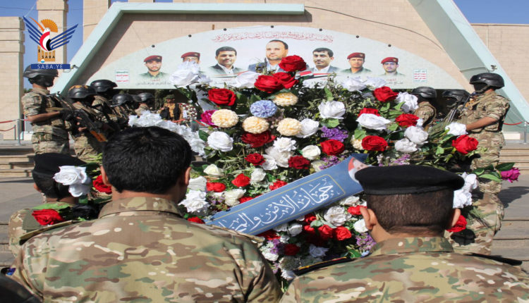 وقرأت قيادات الجهاز الفاتحة على روح الرئيس الشهيد ورفاقه، ووضعت إكليلاً من الزهور على الضريح، تعبيراً عن الوفاء لعظيم ما قدمه الرئيس الشهيد الذي ضحى بدمه وبذل روحه من أجل سيادة الوطن واستقلاله.