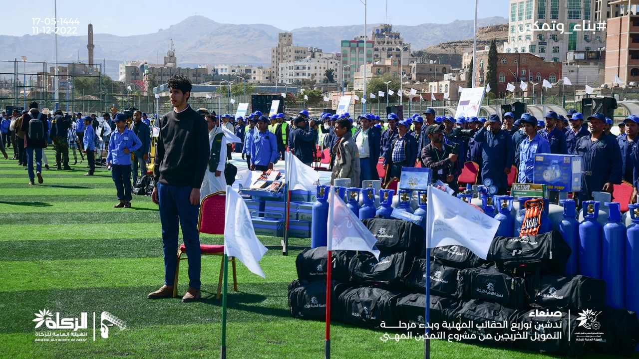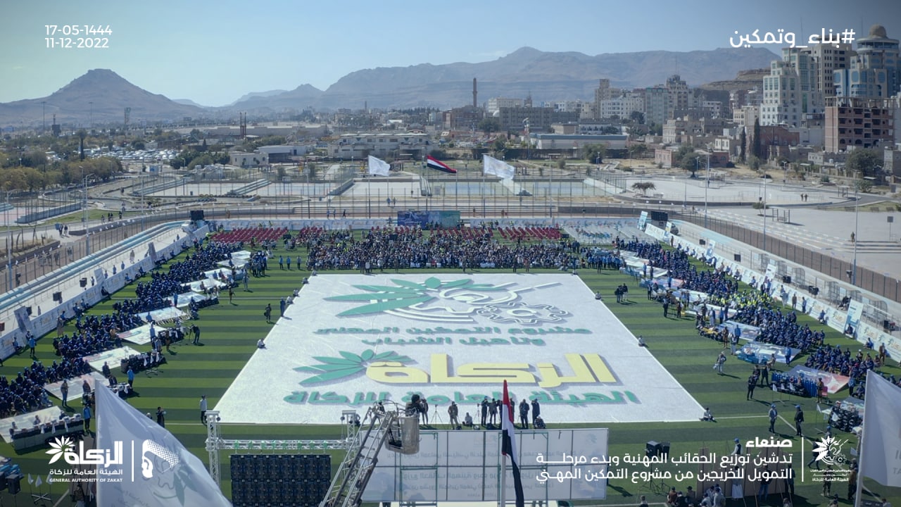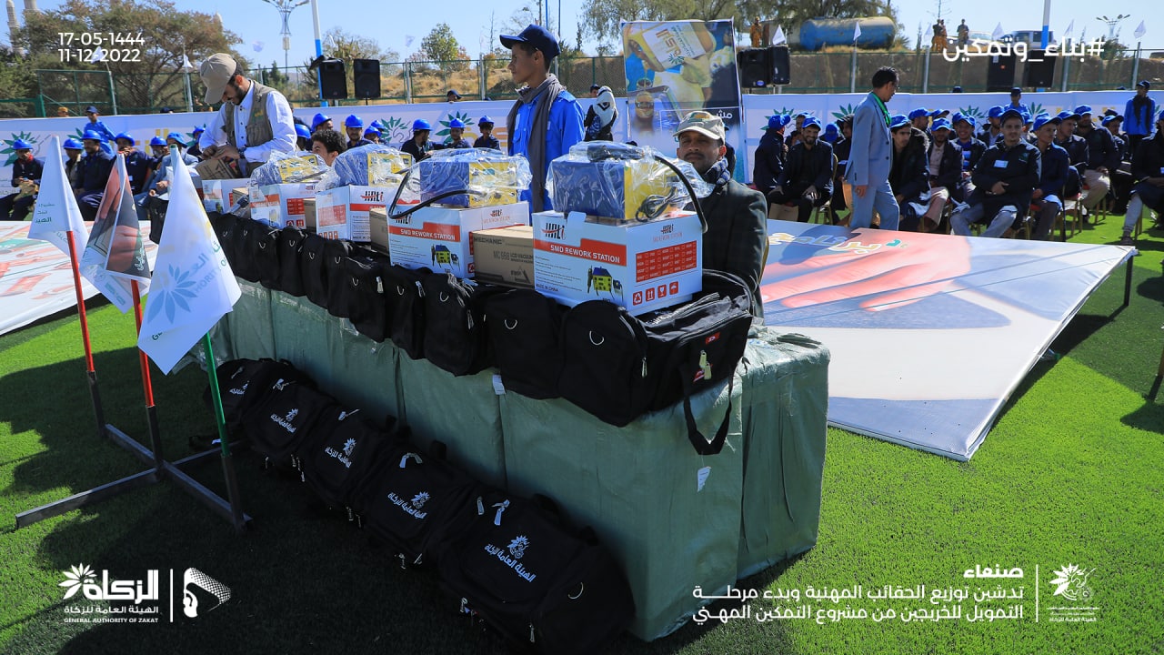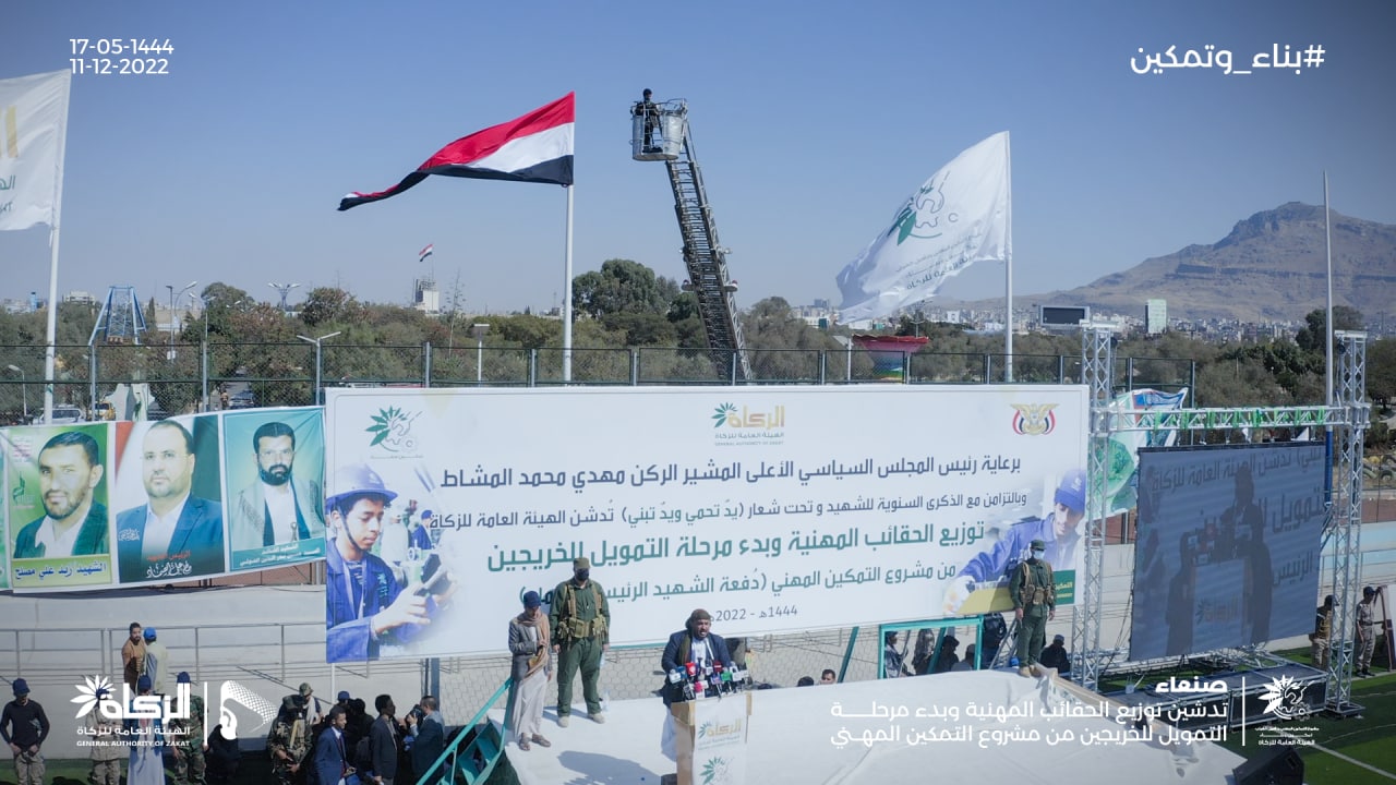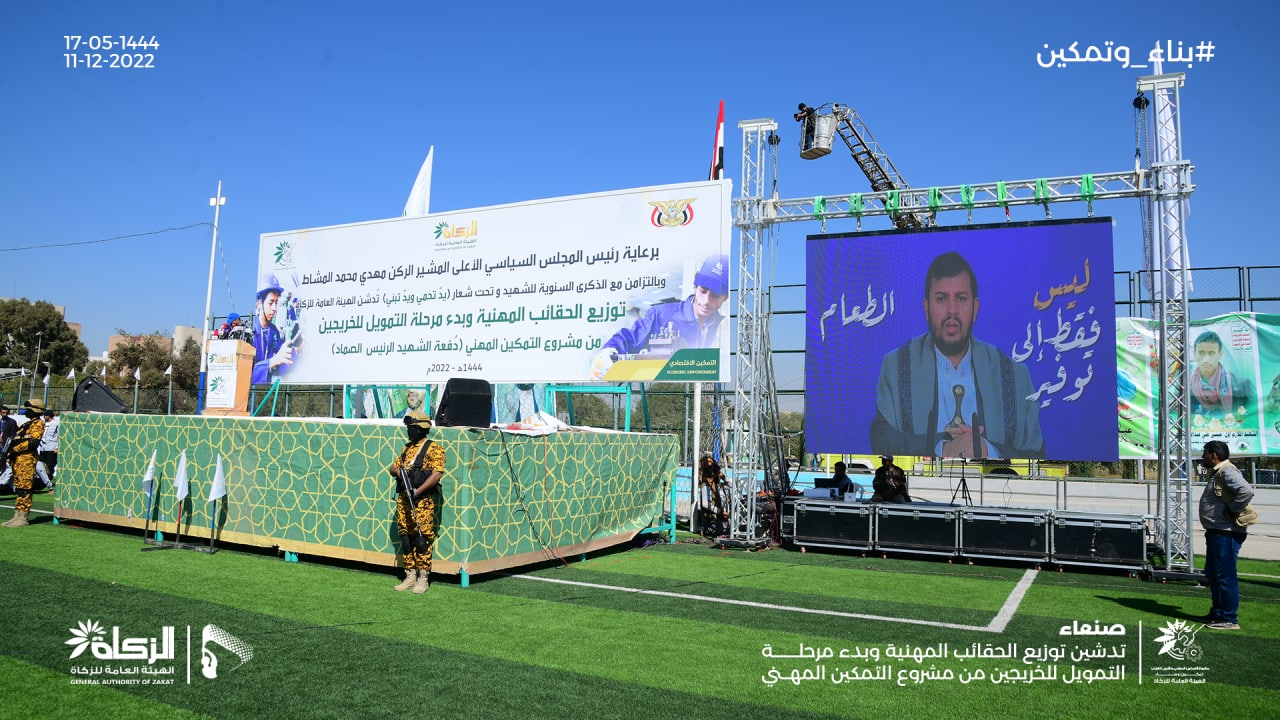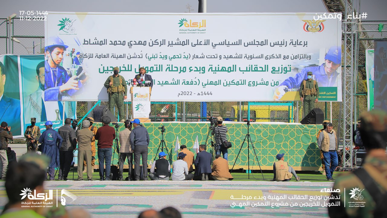 أفق نيوز | نفذت الهيئة العامة للزكاة، اليوم الأحد، مشروع توزيع الحقائب المهنية وبدء مرحلة التمويل للخريجين من مشروع التمكين المهني لدفعة الشهيد الرئيس الصماد، بحضور رئيس الجمهورية المشير مهدي المشاط، وقيادة الدولة.