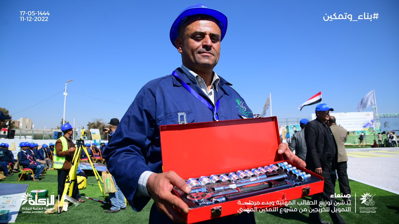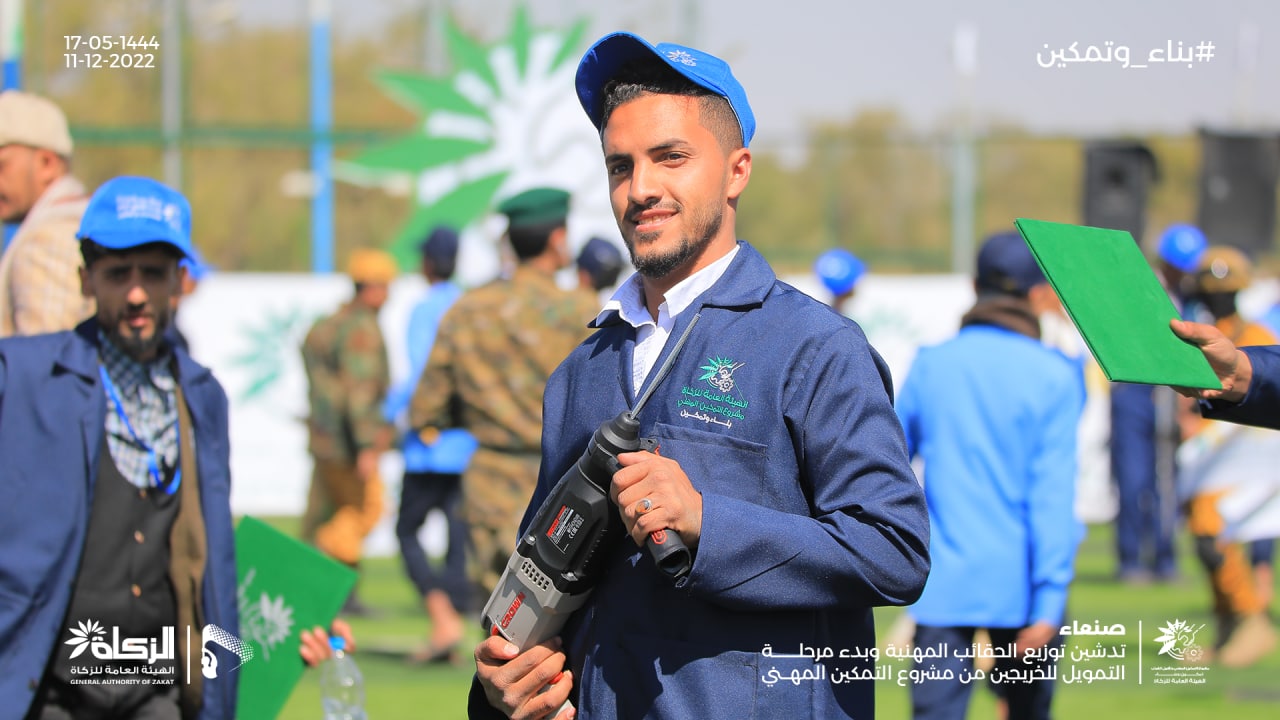 من جهته قال رئيس الهيئة العامة للزكاة شمسان أبونشطان: ندشن مشروع التمكين الاقتصادي لـ500 طالب متخرج بتوزيع حقائب مهنية وتمويل 500 مشروع، موضحا أن إجمالي الحقائب المهنية وتمويل المشاريع بلغ أكثر من 600 مليون ريال.