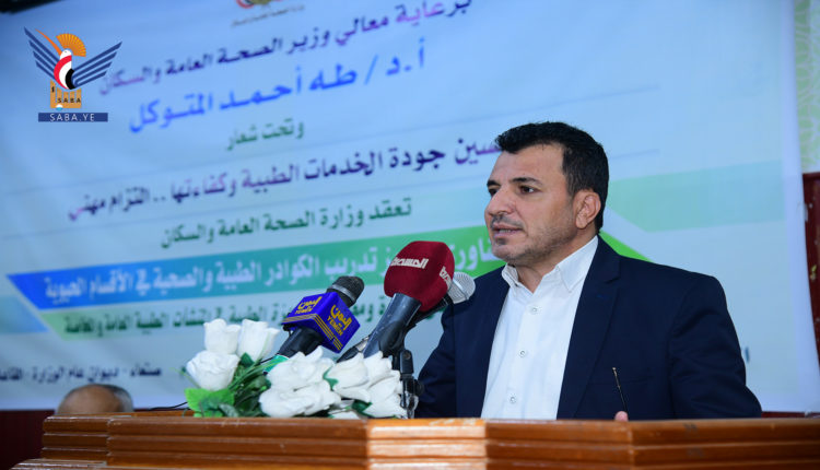 جاء ذلك خلال اللقاء التشاوري الذي عقد بصنعاء اليوم لتعزيز تدريب الكوادر الطبية في الأقسام الحيوية والتدريب العالي على إدارة ومعايرة الأجهزة الطبية في المنشآت الطبية الخاصة والعامة، نظمته وزارة الصحة بمشاركة مدراء المكاتب الصحة بمختلف المحافظات وممثلي المستشفيات الخاصة واتحاد المستشفيات الخاصة.