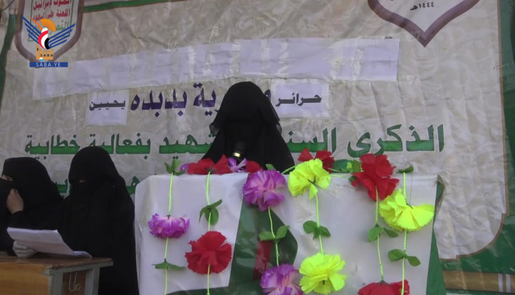 نظمت حرائر مديرية بدبدة بمحافظة مأرب اليوم فعالية خطابية بالذكرى السنوية للشهيد تحت شعار “الشهداء صناع النصر في كل عصر”.