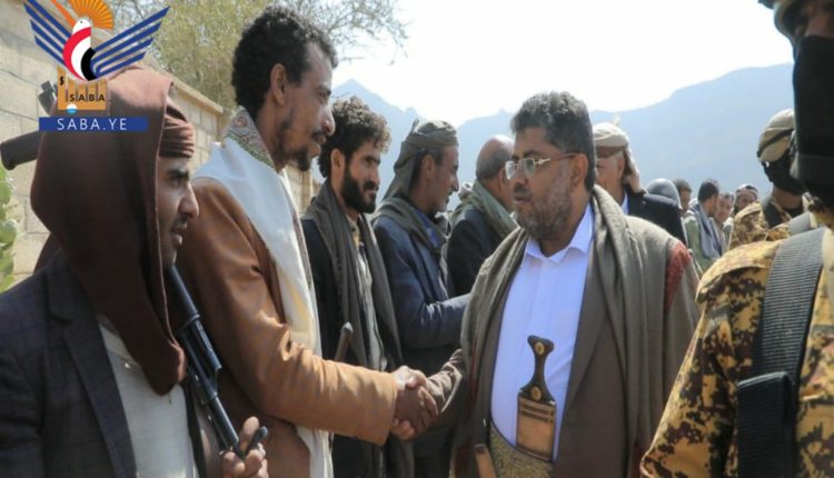 وأضاف محمد علي الحوثي “كل قبيلة نراها بسلاحها وعتادها نراهن عليها ومن مديرية القفر نؤكد للسعودي والإماراتي وأسيادهما الأمريكي والبريطاني وغيرهما، أن كل قبيلة يمنية بمثابة معسكر متكامل لما تمتلكه من عتاد وقوة وبأس”.
