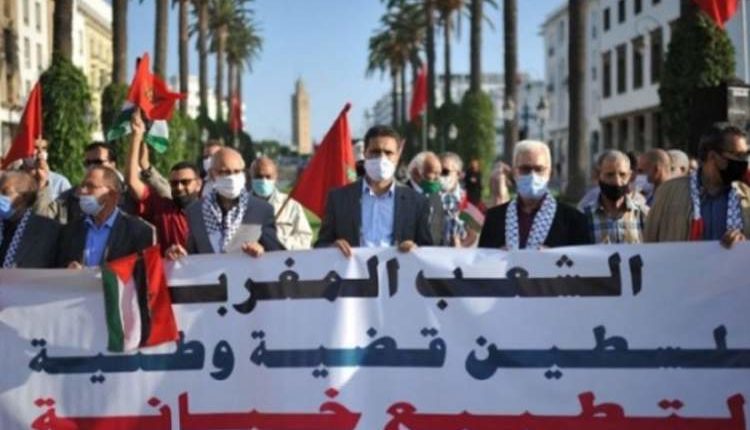 وفي العاصمة المغربية الرباط، نظم مناهضو التطبيع وقفة احتجاجية أمام مقر البرلمان، رددوا خلالها، شعارات متضامنة مع فلسطين وأخرى مناوئة للتطبيع، من قبيل: “كلنا فدا لفلسطين الصامدة”، و”فلسطين للأحرار والتطبيع وصمة عار”، و”الشعب المغربي سير سير حتى النصر والتحرير”، و”ناضل يا مناضل ضد التطبيع من أجل فلسطين كل فلسطين”، و”المغرب أرضي حرة وصهيون يطلع برا”، و”الشعب يريد إسقاط التطبيع”.