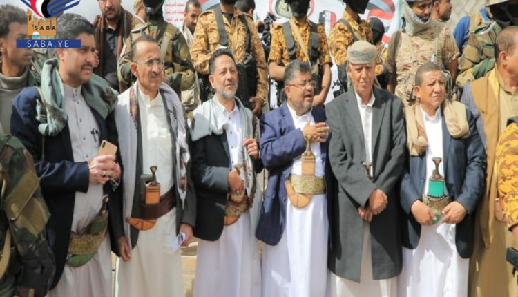 وخاطب المشاركين بقوله: “ثقوا يا أحرار بعدان وأحرار اليمن أنّكم مع الله منتصرين، ومع قيادة الثورة شامخين وغالبين، لأننا نتوكل على الله، والسعودية والإمارات تتوكلان على أمريكا وبريطانيا، اللذين يتوكلان على أسلحتهما المتطورة، وبتوكلنا على الله حتما سننتصر، وسنحرر أرضنا وقرارنا وسنهزم الطغاة، ولن يستطيع أحد انتزاع حقنا أو ينتصر علينا في بلدنا، لأننا نحن أهل الأرض”.