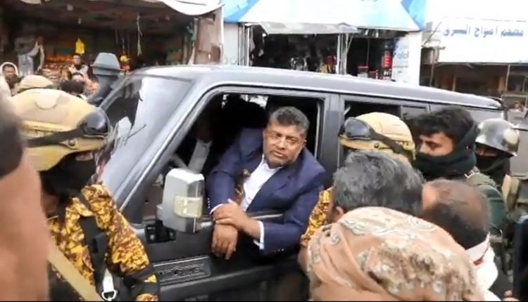 تداول ناشطون في مواقع التواصل الإجتماعي مقطع فيديو لعضو المجلس السياسي الأعلى محمد علي الحوثي وهو يتجول في شوارع مديرية بعدان بمحافظة إب.