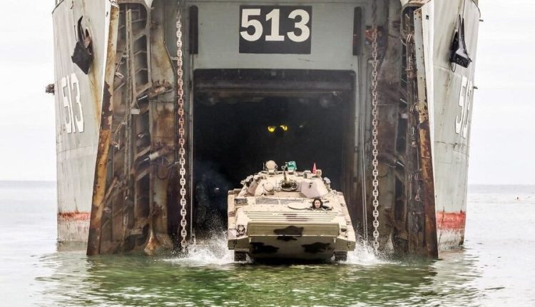 وتم في عمليات الإنزال البرمائية استخدام دبابات “تي 72″ وناقلات الجند ” BMP۲”.