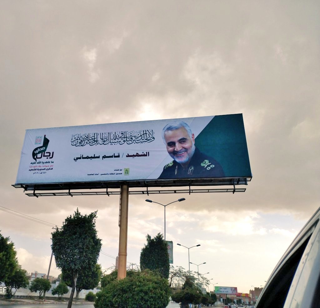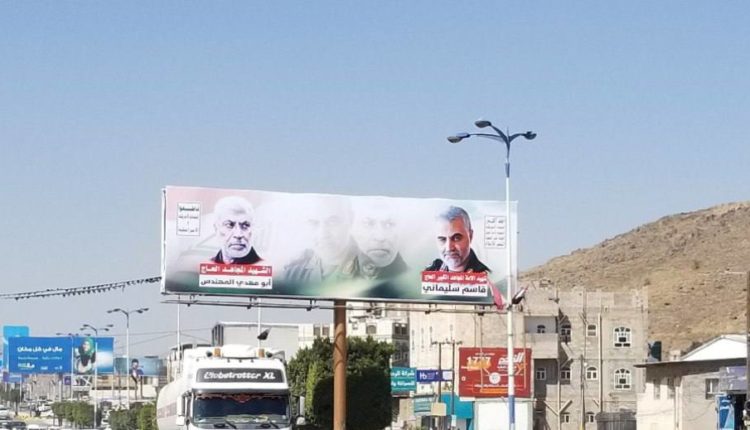 وتداول نشطاء على مواقع التواصل الإجتماعي صوراً من العاصمة صنعاء لقائد فيلق القدس الفريق قاسم سليماني ونائب رئيس هيئة الحشد الشعبي العراقي أبو مهدي المهندس، اللذين استشهدا بغارة جوية لطائرة أمريكية بدون طيار قرب مطار بغداد في ينايرعام 2020.