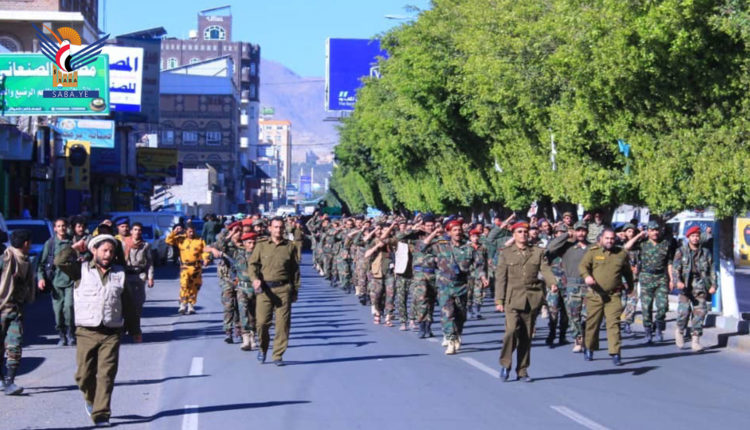 شهدت مديرية الثورة في أمانة العاصمة صنعاء، الخميس، عرضاً لوحدات رمزية، لتأكيد الجهوزية ومواصلة التحشيد لرفد الجبهات ومواجهة العدوان.