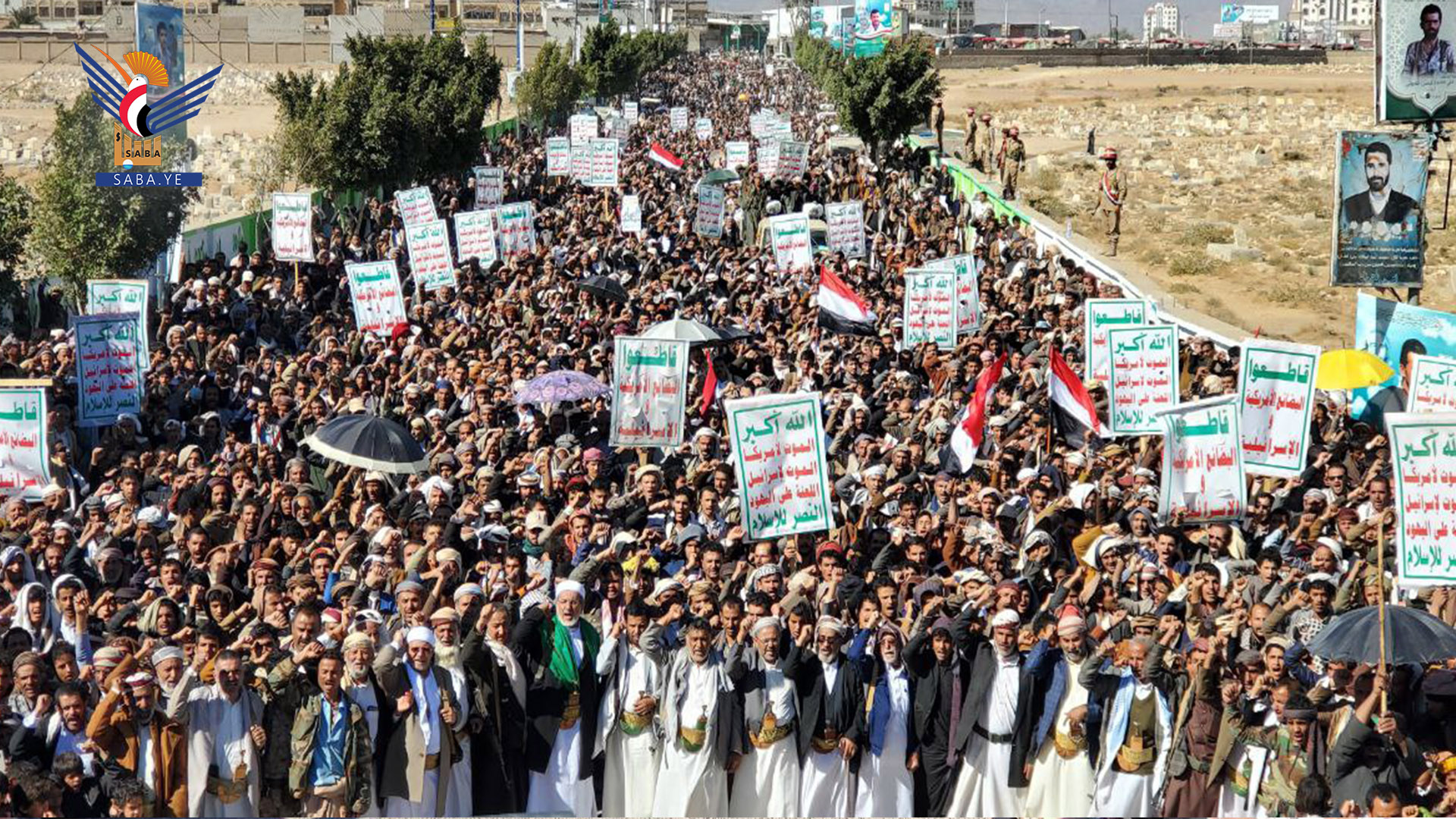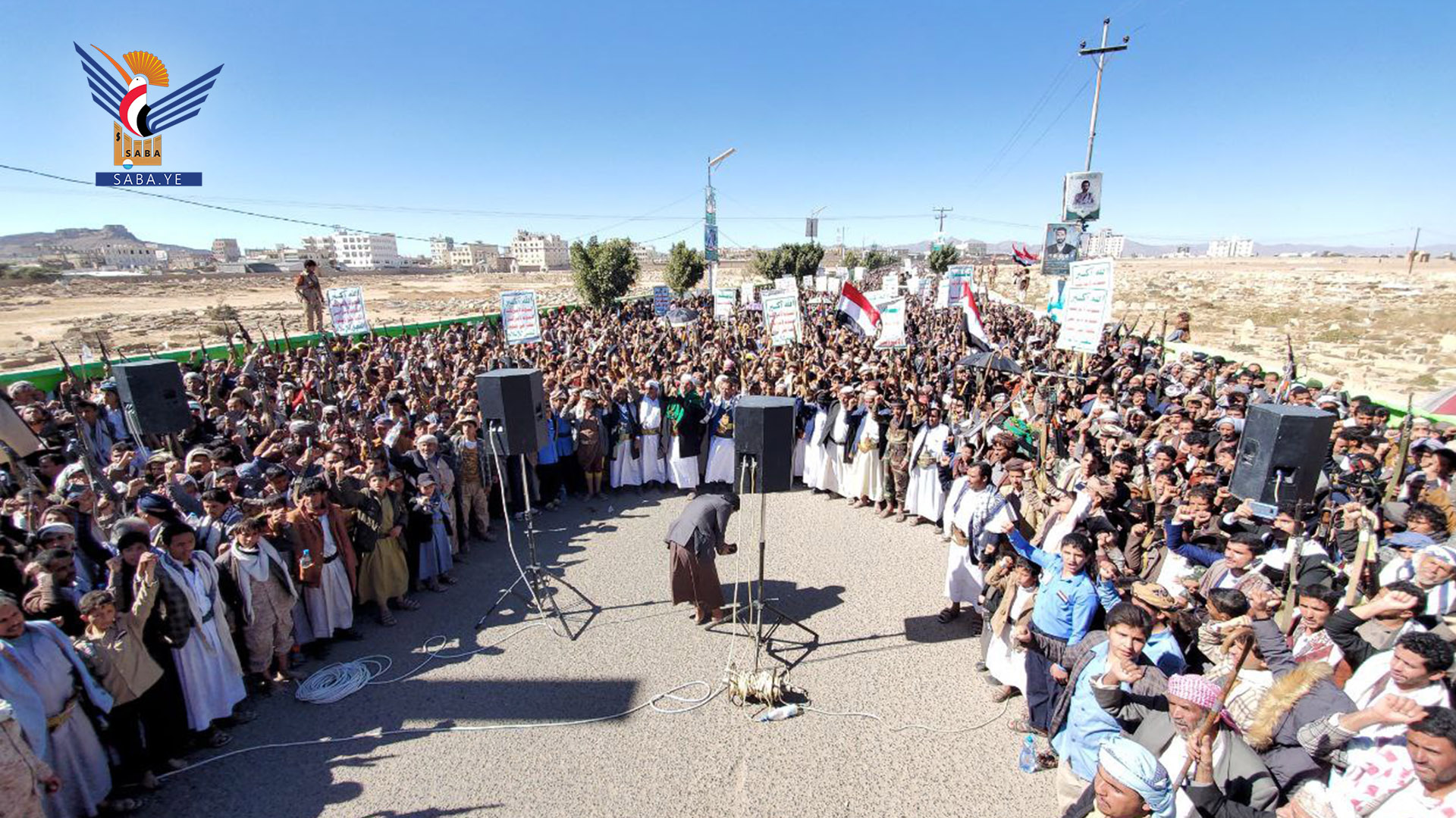 ورفع المشاركون في المسيرة شعارات وهتافات السخط ضد العدوان الأمريكي السعودي الإماراتي والحصار، مؤكدين أن الحصار المفروض على اليمن، هو حالة حرب معلنة وواضحة.