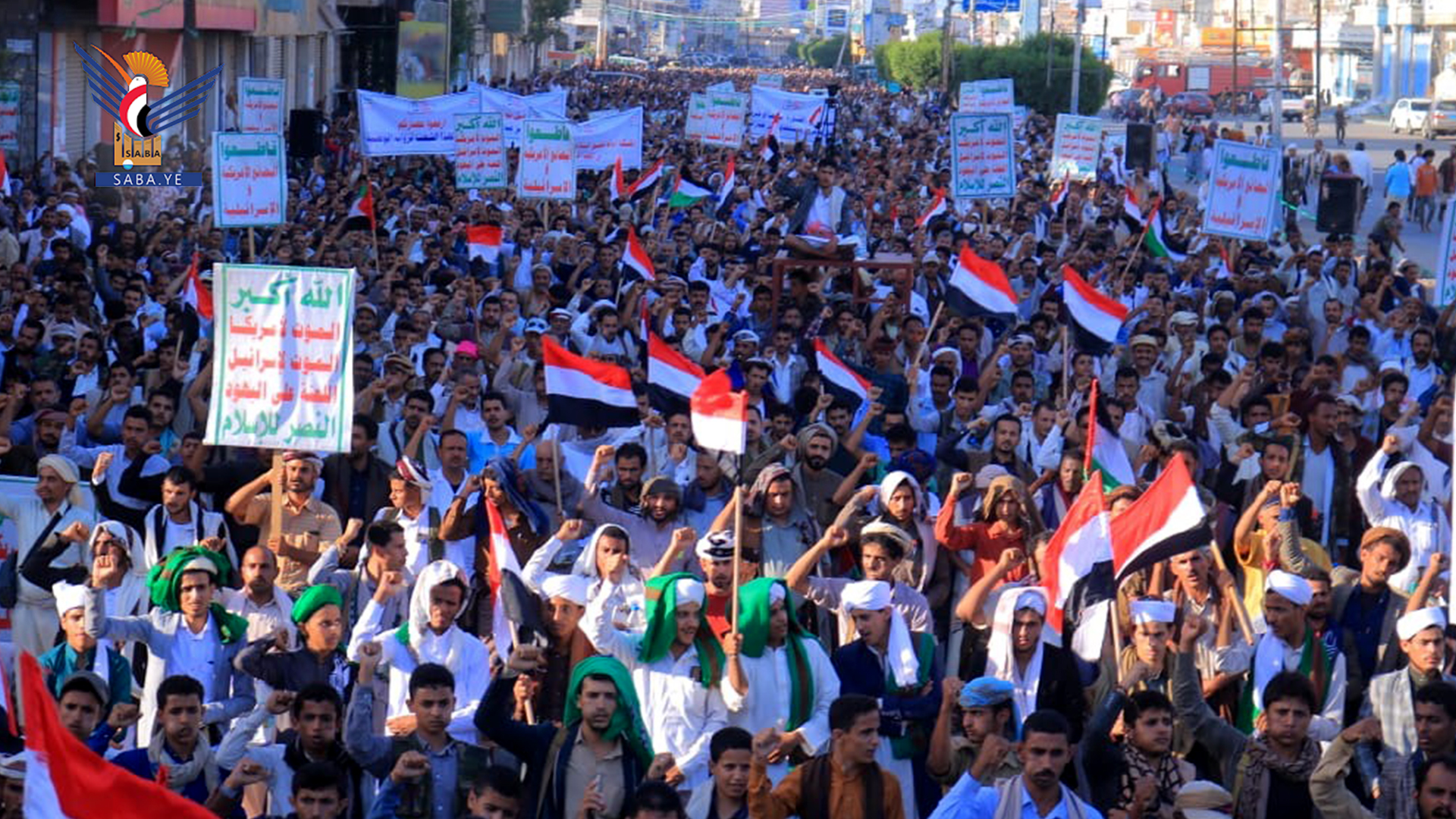 كما رددوا هتافات الغضب والسخط تجاه الحصار الأمريكي والتأكيد على حق الشعب اليمني في الدفاع عن نفسه وسيادته في وجه قوى العدوان، منددين بموقف الأمم المتحدة التي لا تحمل خطة حقيقية للسلام ورفع الضرر عن الشعب اليمني.