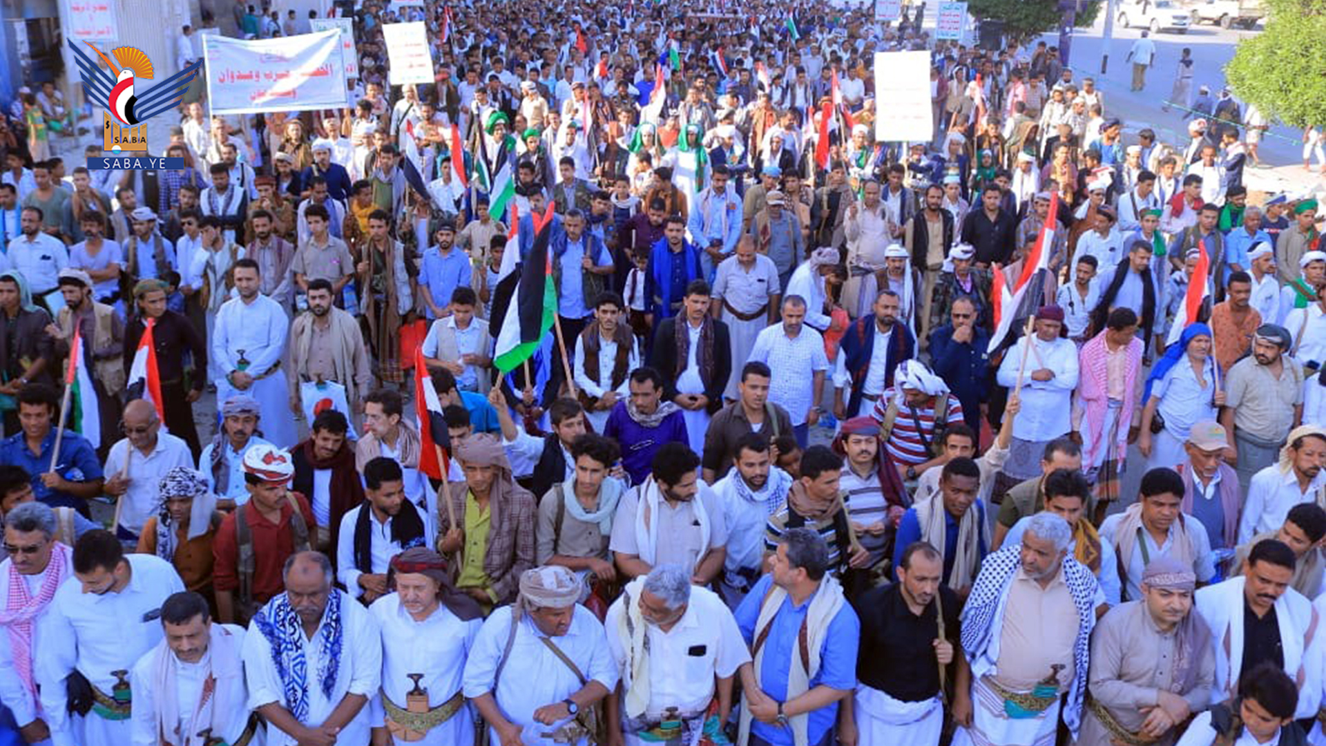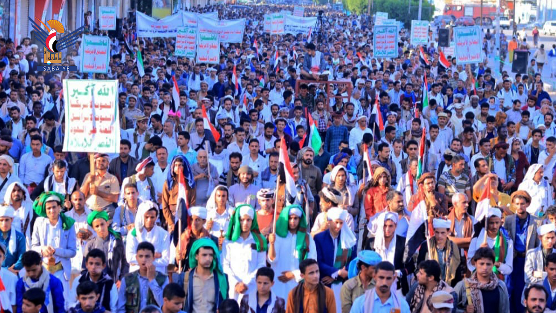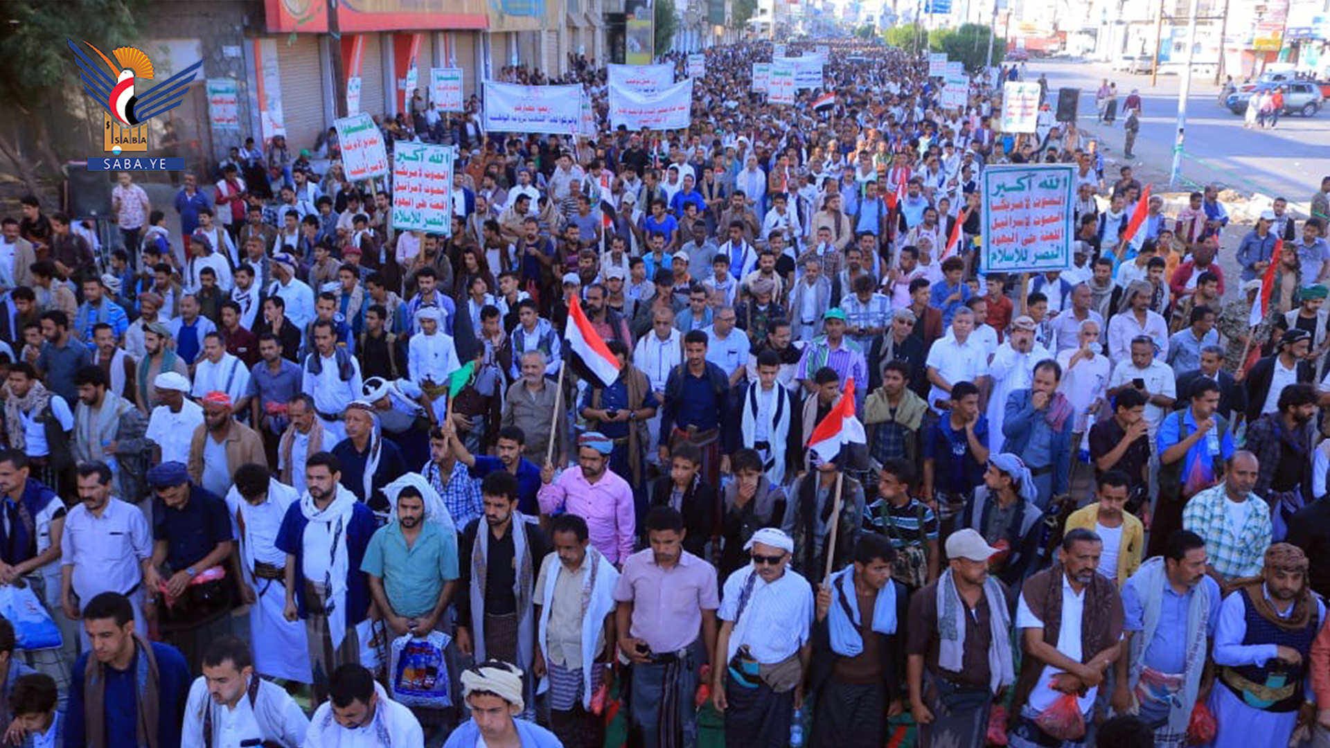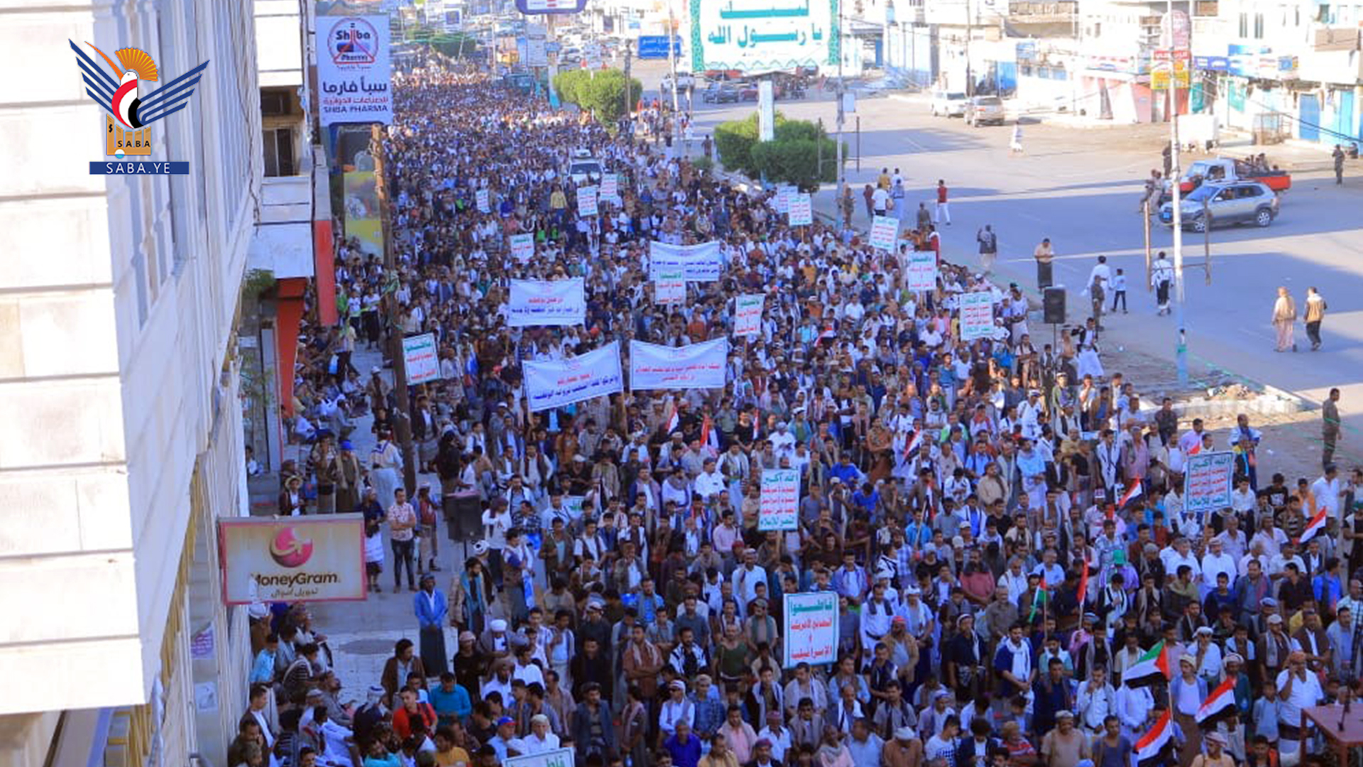 وهتف المشاركون في المسيرة من أبناء مديريات مركز المحافظة والمديريات الجنوبية والشرقية، بالتأكيد على استمرار الصمود وتعزيز الثبات في الموقف والمبدأ والقضية لمواجهة العدوان.