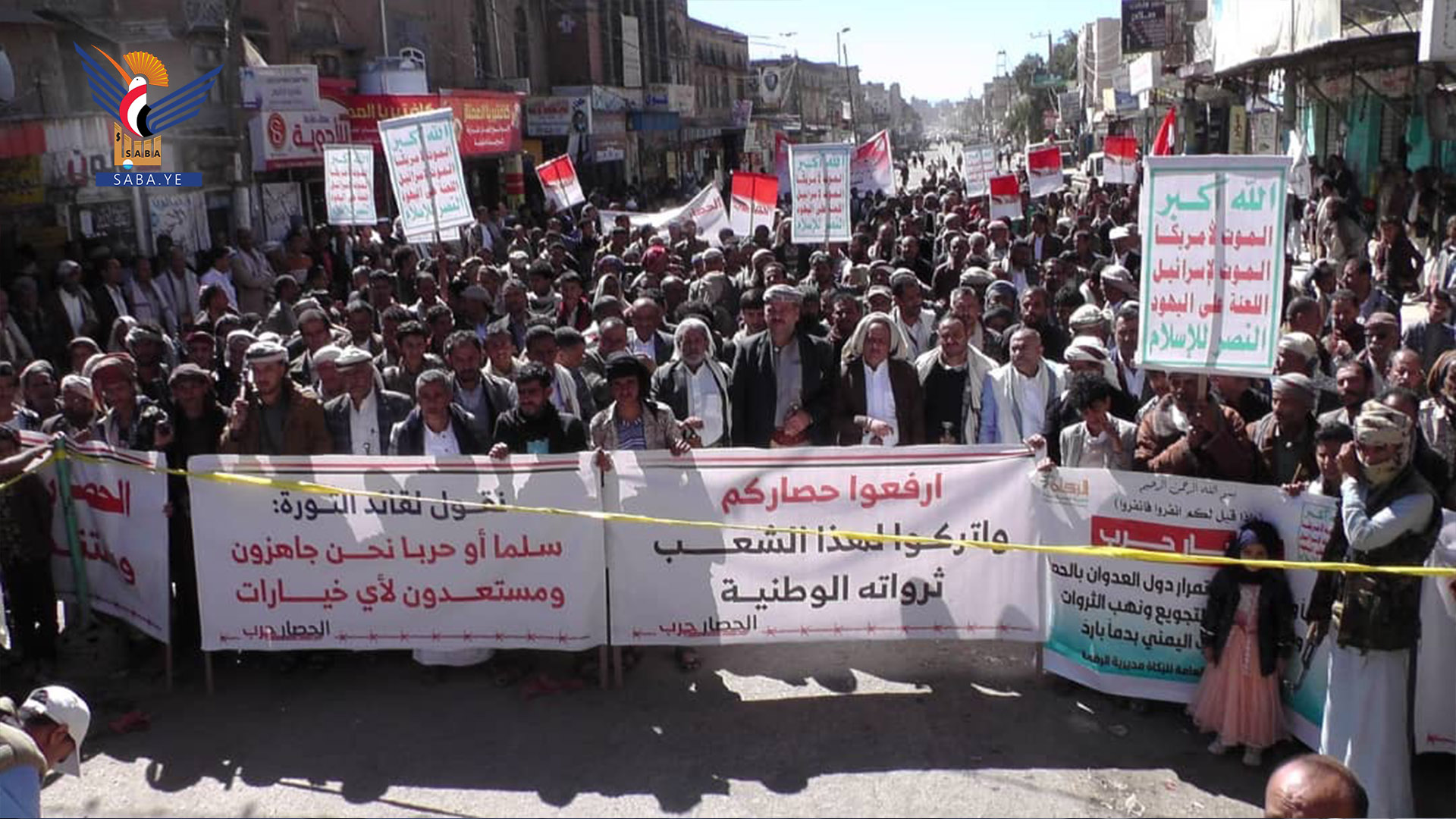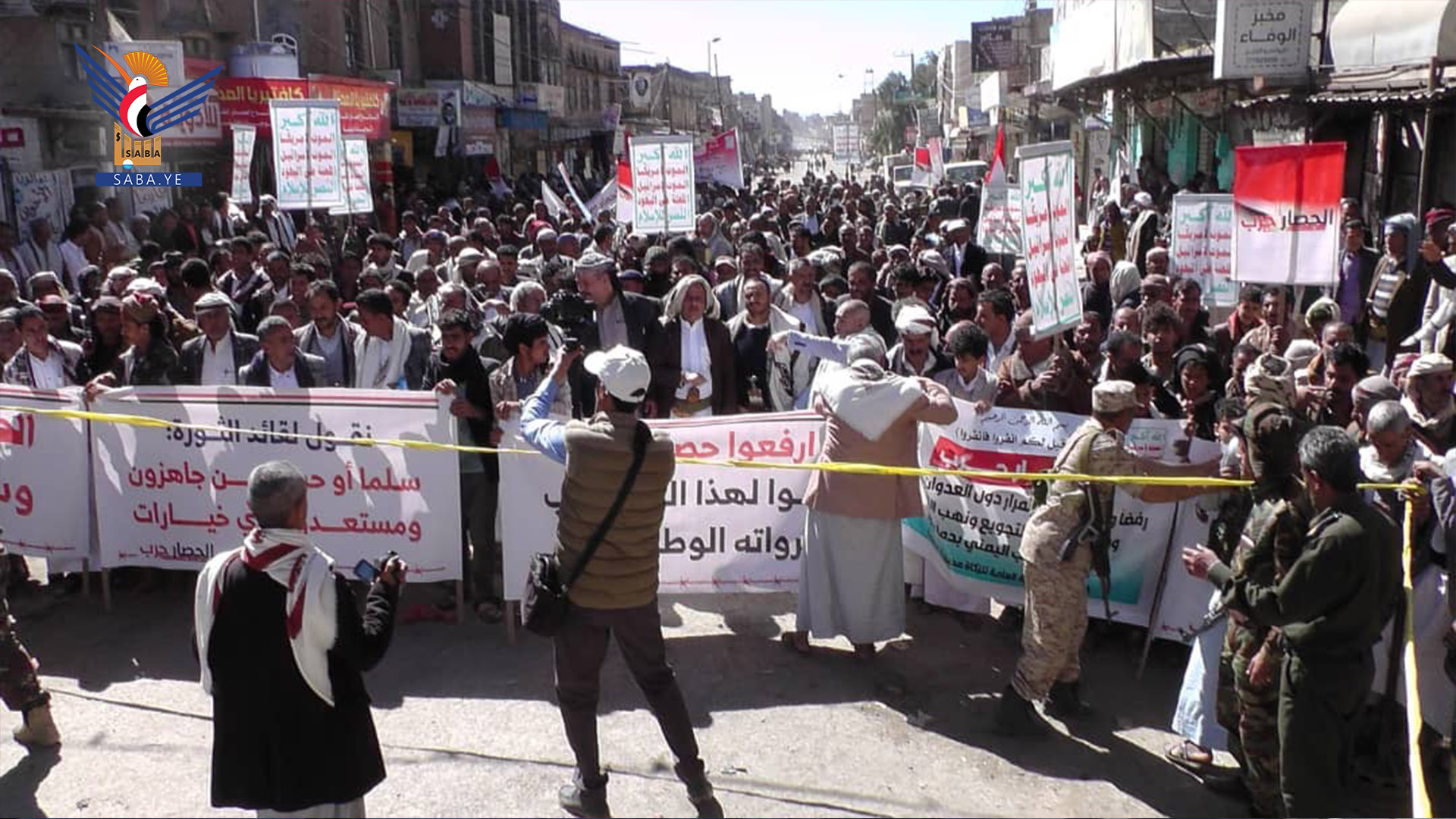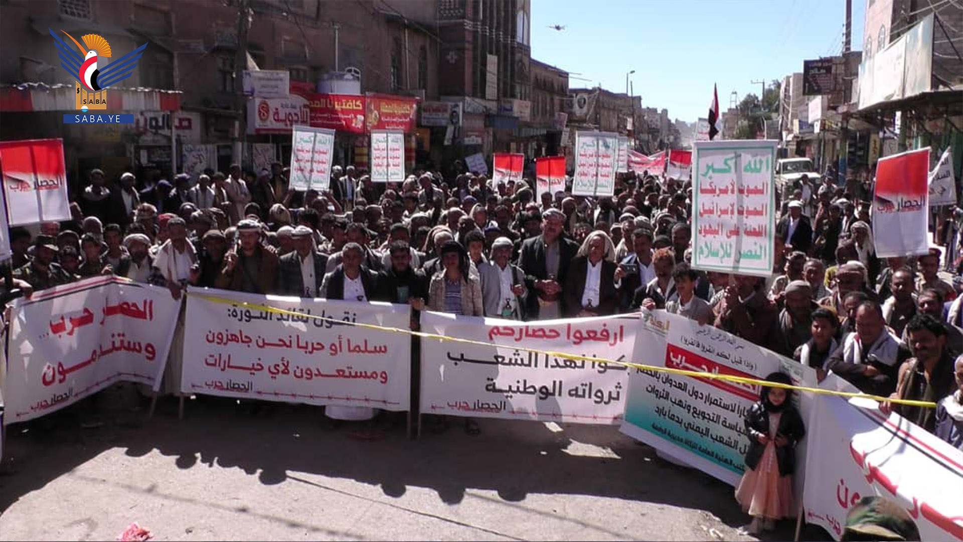 وحمّل المشاركون في المسيرة، الأمم المتحدة والمنظمات الدولية وقوى العدوان مسؤولية تفاقم الوضع الإنساني جراء الحصار، وما ينتج عنه من شلل في الخدمات العامة وتعطل مقومات الحياة.