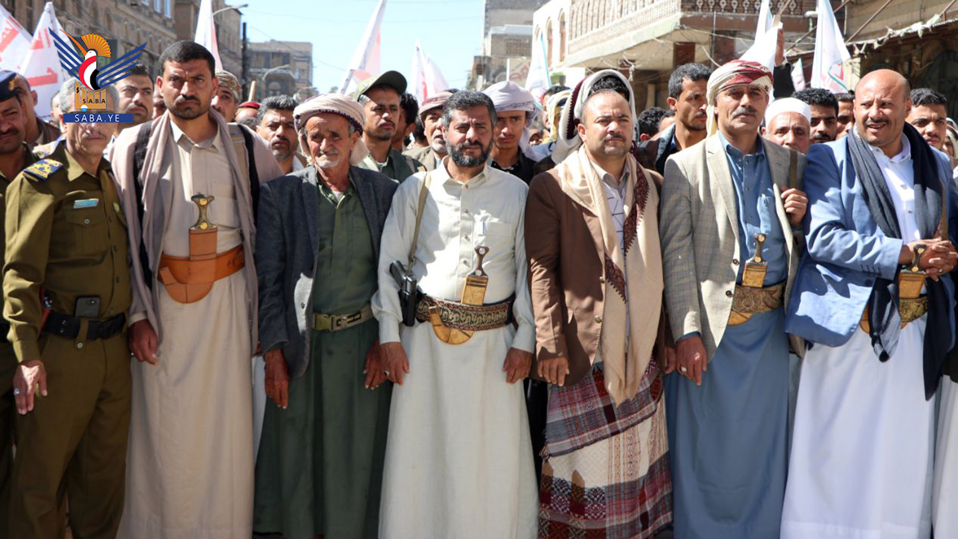 وجابت المسيرة التي تقدمها محافظ ذمار محمد ناصر البخيتي ووكلاء المحافظة وعدد أعضاء مجلس الشورى ومسؤل التعبئة العامة ومدير أمن المحافظة وقيادات السلطة المحلية والتنفيذية والأمنية والمكونات المجتمعية، عدد من شوارع المدينة رافعة الشعارات المنددة بحرب التجويع والحصار واستمرار العدوان.