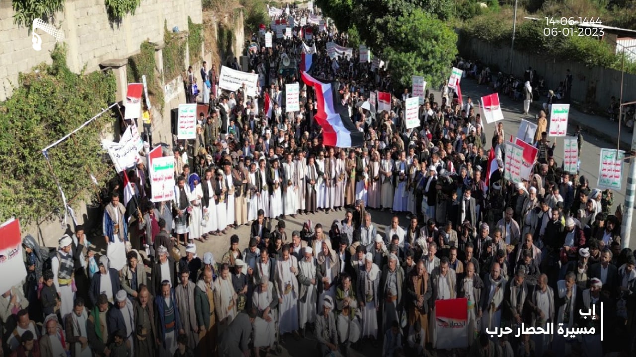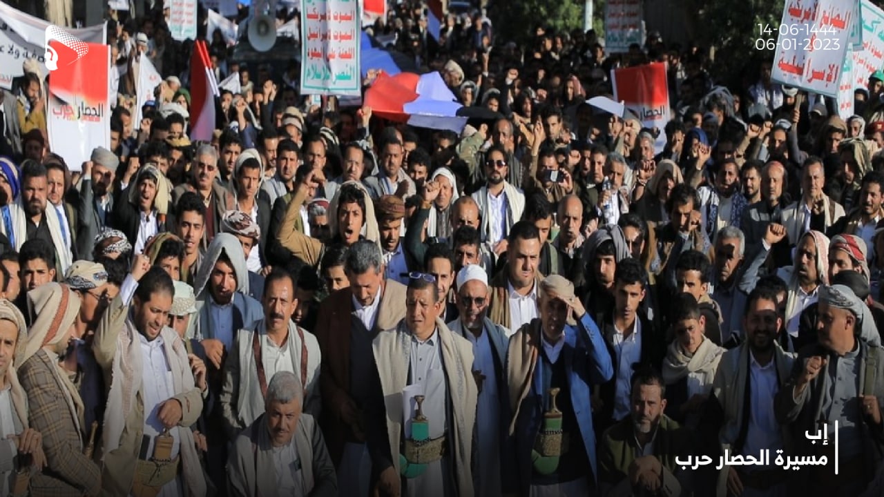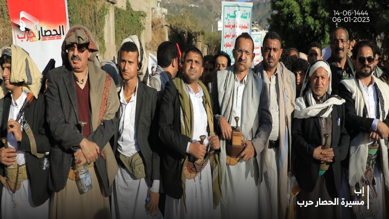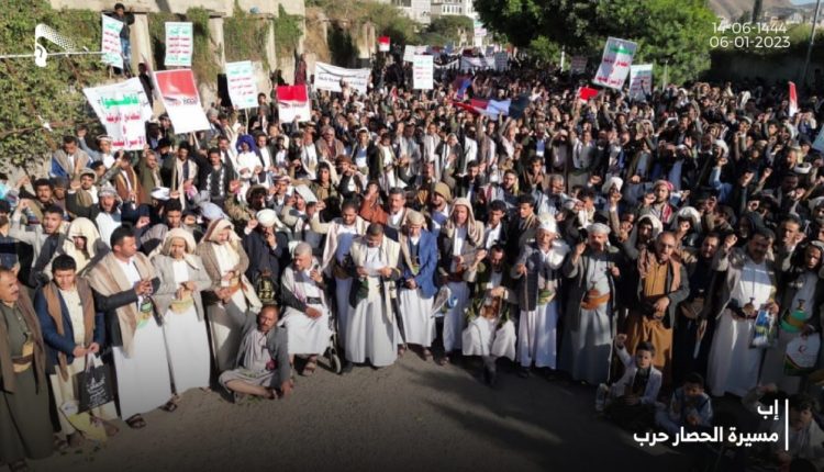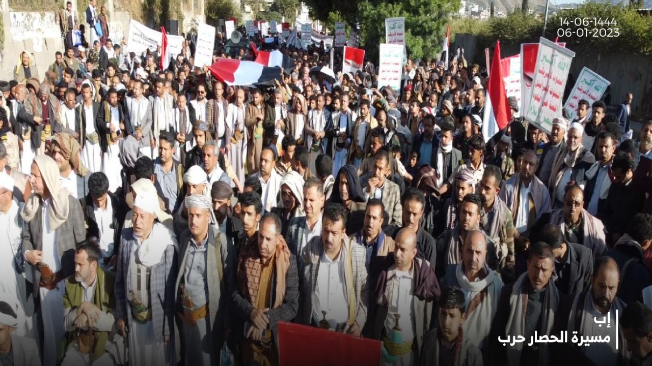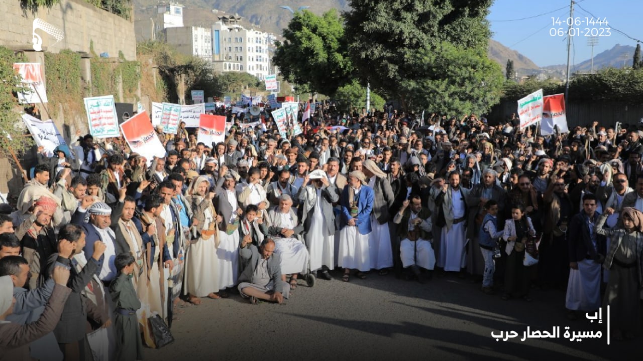 خرجت في مدينة إب، اليوم، مسيرة جماهيرية حاشدة تنديدا باستمرار الحصار تحت شعار “الحصار حرب” .