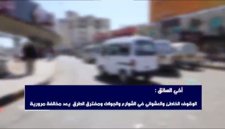 نشر الإعلام المروري اليمني “فلاش توعوي” عن أضرار الوقوف الخاطئ والعشوائي في الشوارع والجولات ومفترق الطرق الذي يعد مخالفة مرورية.