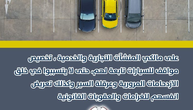 إدارة المرور بصنعاء تدعو مالكي المنشآت التجارية والخدمية للقيام بهذا الأمر فوراً.. وإلا غرامات وعقوبات على المتخلفين