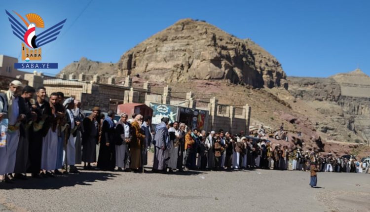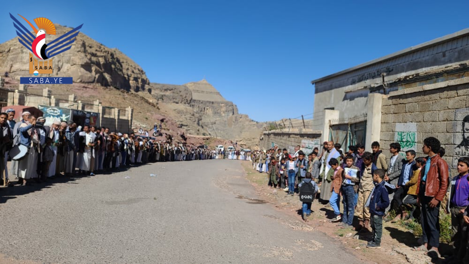 نظّم أبناء مديرية كحلان عفار في محافظة حجة، اليوم السبت، وقفة احتجاجية للتنديد باستمرار العدوان الأمريكي – السعودي تحت شعار “الحصار حرب”.