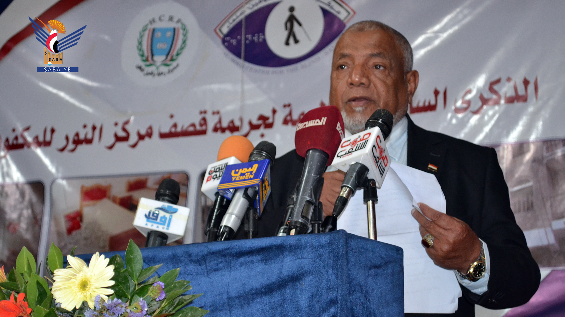 وفي الفعالية أشار وزير الشؤون الاجتماعية والعمل عبيد سالم بن ضبيع، إلى أن هذه الفعالية تأتي للتأكيد للعالم أن الشعب اليمني بكل فئاته مستمر في الصمود والثبات في وجه العدوان الذي استهدف كل مؤسسات ومرافق الدولة بما فيها التي تعنى بذوي الإعاقة، ومنها مركز النور للمكفوفين.