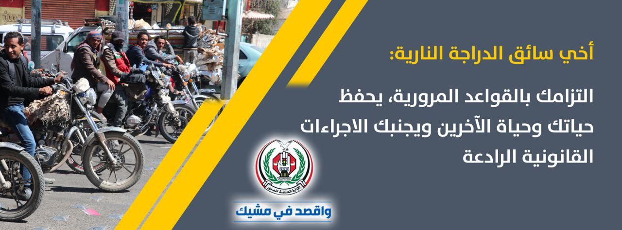 أخي سائق الدراجة النارية: التزامك بآداب وقواعد المرور يحفظ حياتك وحياة الآخرين ويجنبك الإجراءات القانونية الرادعة