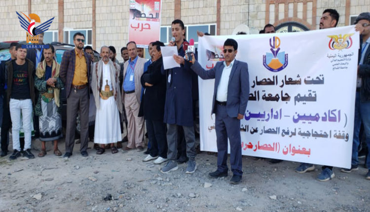 وقفة إحتجاجية لمنتسبي جامعة الضالع للتنديد بإستمرار الحصار على اليمن