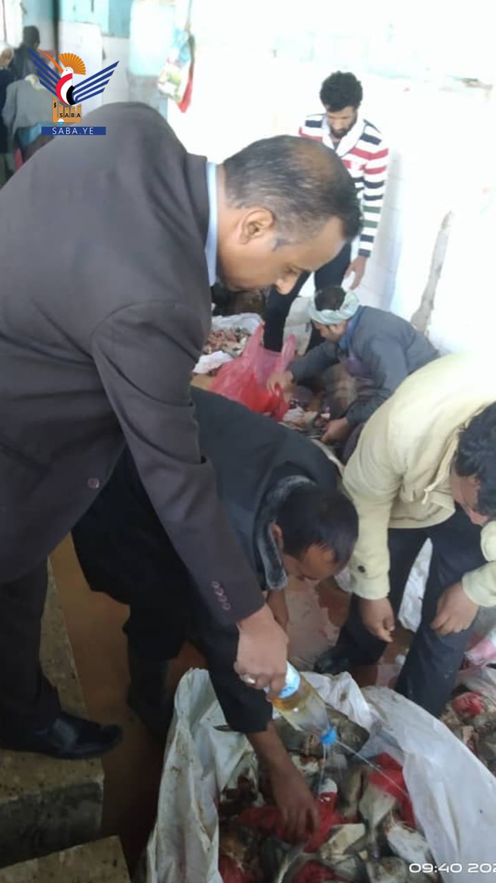 إتلاف كمية من الأسماك غير الصالحة للإستهلاك الآدمي بسوق البليلي في العاصمة صنعاء