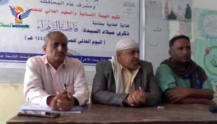 وفي الفعالية أكد مدير عام المديرية عبدالرحمن العريقي وعميد المعهد الدكتور منير عبده، أهمية إحياء هذه المناسبة لتعزيز ارتباط نساء اليمن بالسيدة فاطمة الزهراء وترسيخ علاقة الاقتداء بها والتمسك بالهوية الإيمانية.