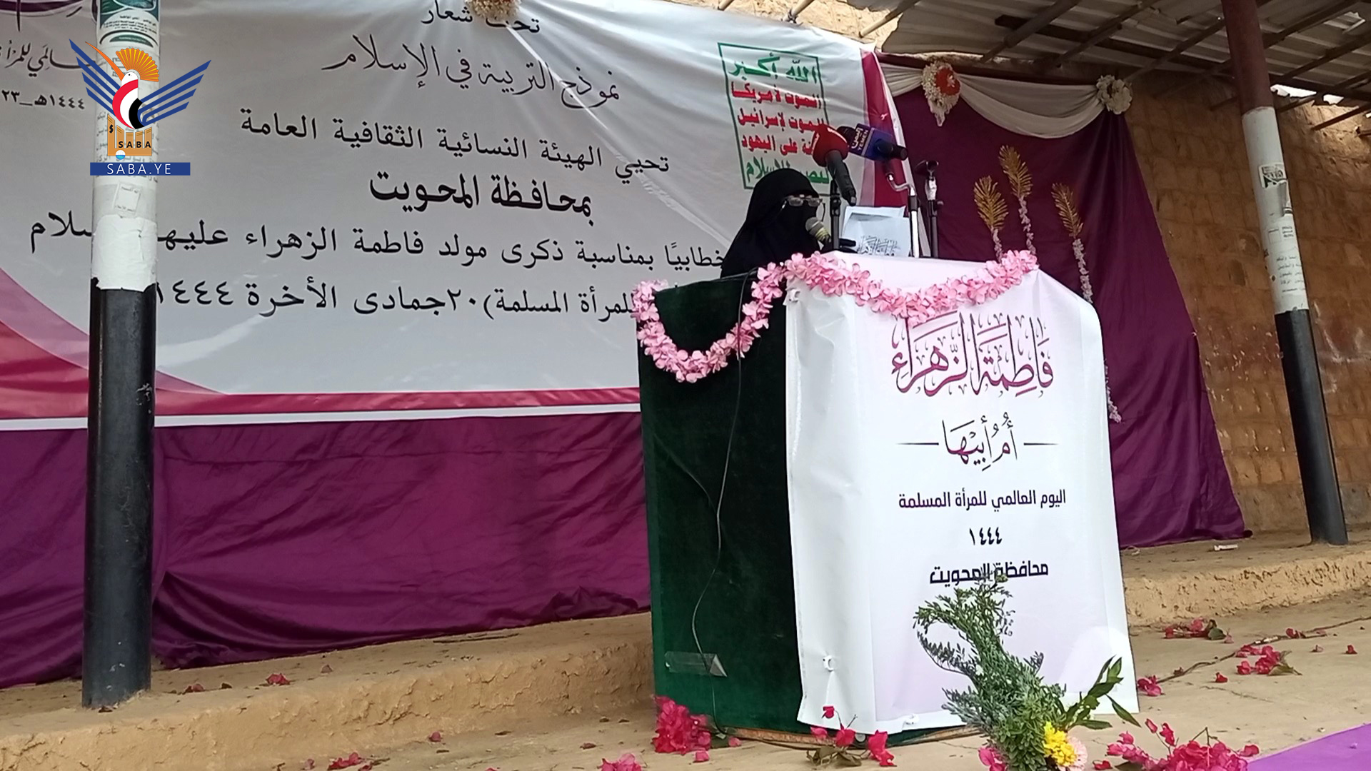 أحيت حرائر محافظة المحويت اليوم ذكرى ميلاد فاطمة الزهراء، اليوم العالمي للمرأة المسلمة بفعالية خطابية نظمتها الهيئة النسائية بالمحافظة.