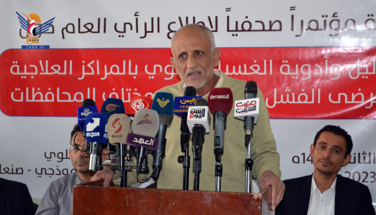 فيما طالب بيان المؤتمر الصحفي، الذي تلاه ناطق وزارة الصحة، الدكتور أنيس الأصبحي، المنظمات الدولية والأممية بسرعة توفير جلسات غسيل كلوي بشكل عاجل لتستمر مراكز الغسيل في العمل وإنقاذ حياة المرضى .