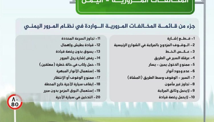 تعرف على ابرز المخالفات المرورية في نظام المرور اليمني On يناير 14, 2023 551 Share أفق نيوز | توعية مرورية 551 Share FacebookTwitterGoogle+ReddItWhatsAppPinterestEmail