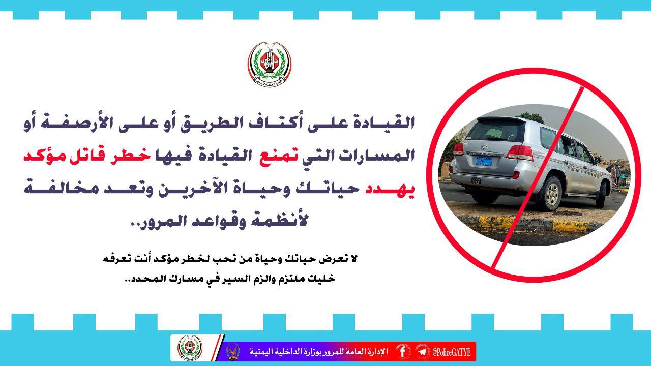 #الإعلام_المروري_اليمني ينشر هذة التعليمات الهامة أفق On يناير 17, 2023 548 Share أفق نيوز | توعية 548 Share FacebookTwitterGoogle+ReddItWhatsAppPinterestEmail