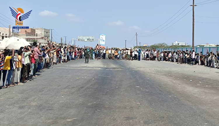 قافلة ووقفة قبلية حاشدة في كيلو 16 بالحديدة تدين حرق القرآن