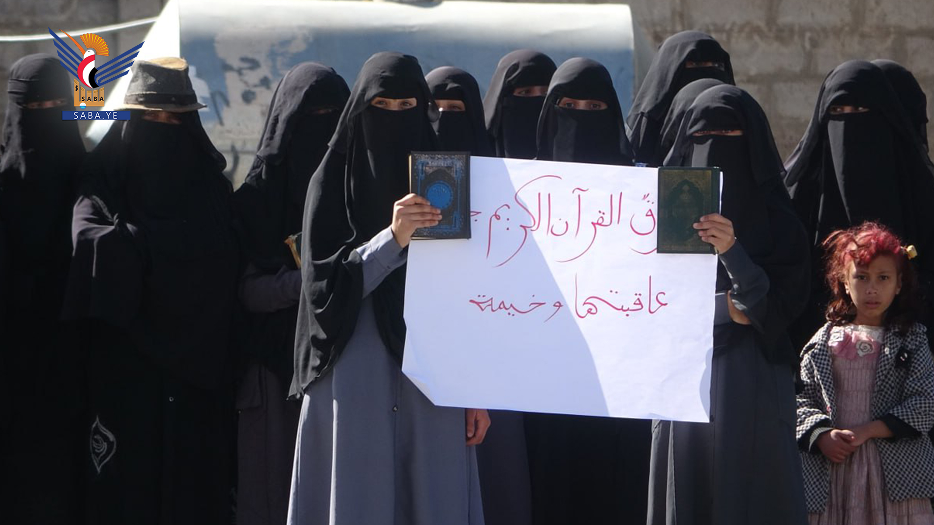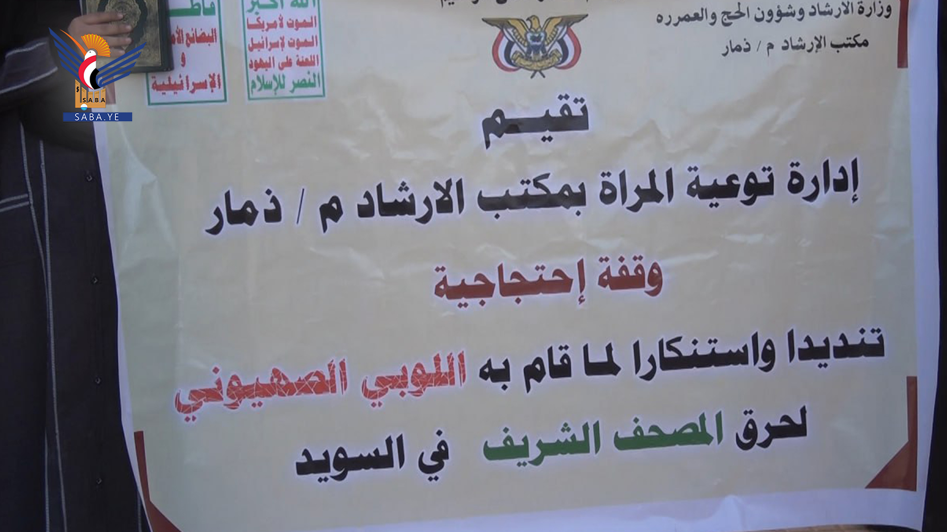 نظمّت إدارة توعية المرأة في مكتب الإرشاد بمدينة ذمار اليوم وقفة احتجاجية للتنديد بحرق نسخ من المصحف الشريف في السويد وهولندا والدنمارك.