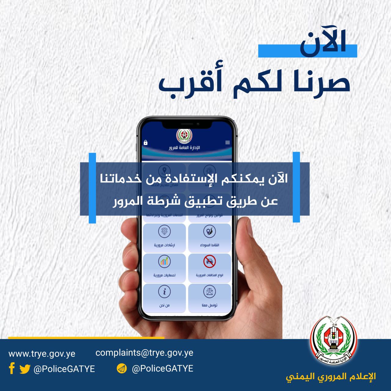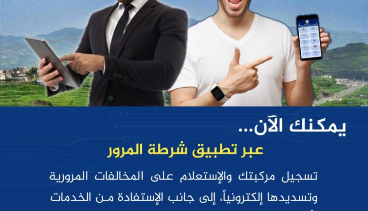 أعلن الإعلام المروري اليمني، لكل السائقين في العاصمة صنعاء والمحافظات الحرة أنه بات الآن بإمكانهم عن طريق “تطبيق شرطة المرور” تسجيل المركبات والإستعلام عن المخالفات المرورية وتسديدها إلكترونياً بكل سهولة، إلى جانب الإستفادة من الخدمات الأخرى المقدمة من المرور.