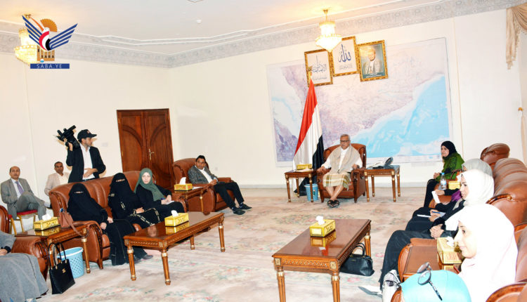 جاء ذلك لدى لقاء رئيس الوزراء اليوم ومعه وزير حقوق الإنسان علي الديلمي، عدداً من القيادات والعاملات في القطاعين الحكومي والمجتمعي.