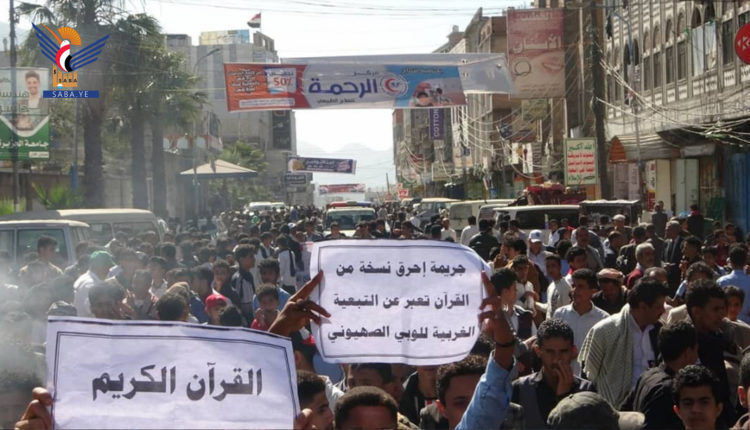 ورددوا عبارات الاستهجان والرفض المطلق لهذه الأعمال المسيئة للإسلام، والمطالبة بالاستنفار من قبل شعب الإيمان لمواجهة أعداء القرآن والمخططات الصهيونية التي تستهدف الأمة ومقدساتها.