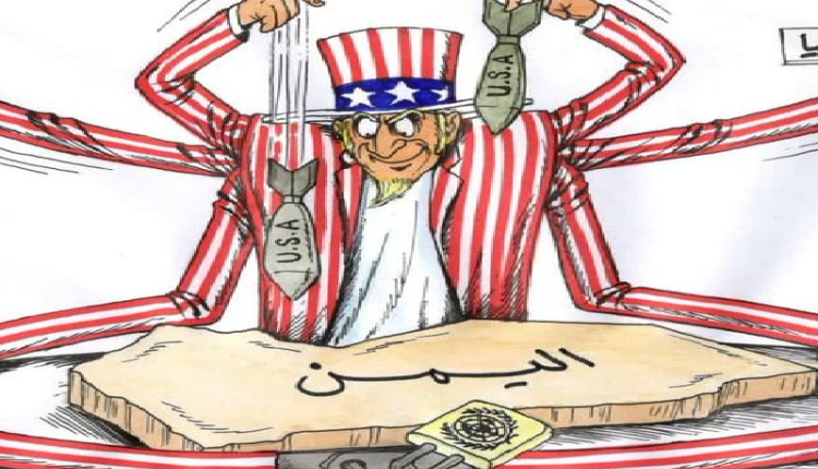 فامريكا هي الشر وراس الافعى وكاذبة فيما تدعيه من إهتمام بأمر اليمن والسلام فيه هي العدو الأول لليمنيين وهي من أمر وشارك في الحرب عليه وهم من يحاصرنه الآن وكل خراب ودمار وكل قطرة دم سقطت في اليمن هم المسؤول الأول عنها