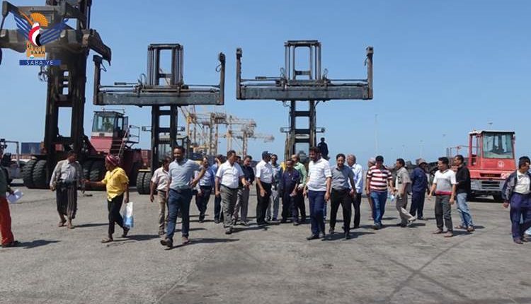 تفقد نائب رئيس مؤسسة موانئ البحر الأحمر اليمنية زيد الوشلي، اليوم سير العمل بمحطة الحاويات في ميناء الحديدة.