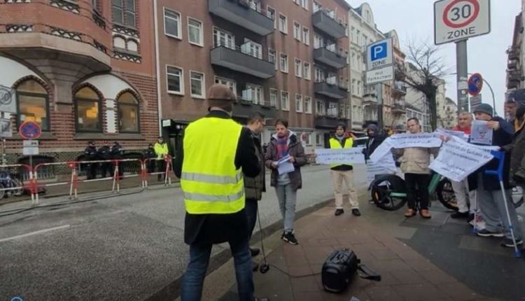 نظم أبناء الجالية اليمنية في شمال ألمانيا وقفة أمام القنصلية السويدية في هامبورغ إحتجاجاً على جريمة حرق نسخة من القرآن الكريم.