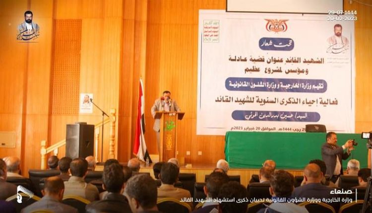 نظمت وزارتا الخارجية والشؤون القانونية اليوم الاثنين، فعالية خطابية بالذكرى السنوية للشهيد القائد حسين بن بدر الدين الحوثي.