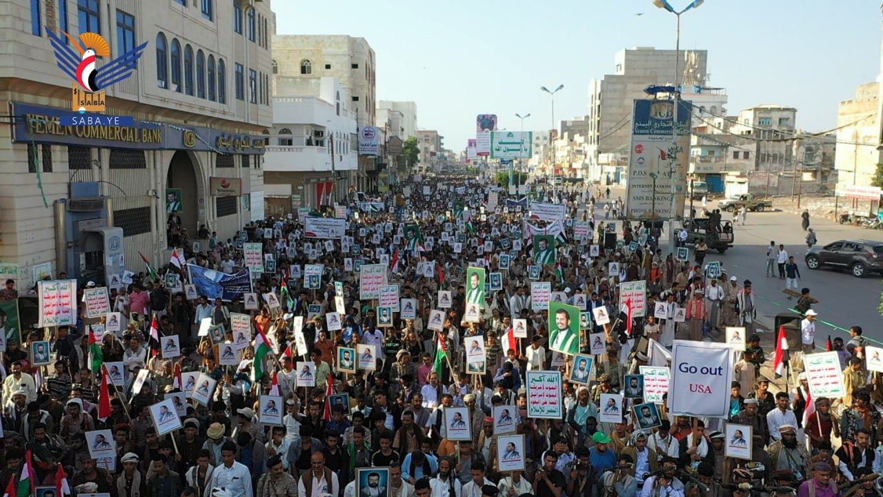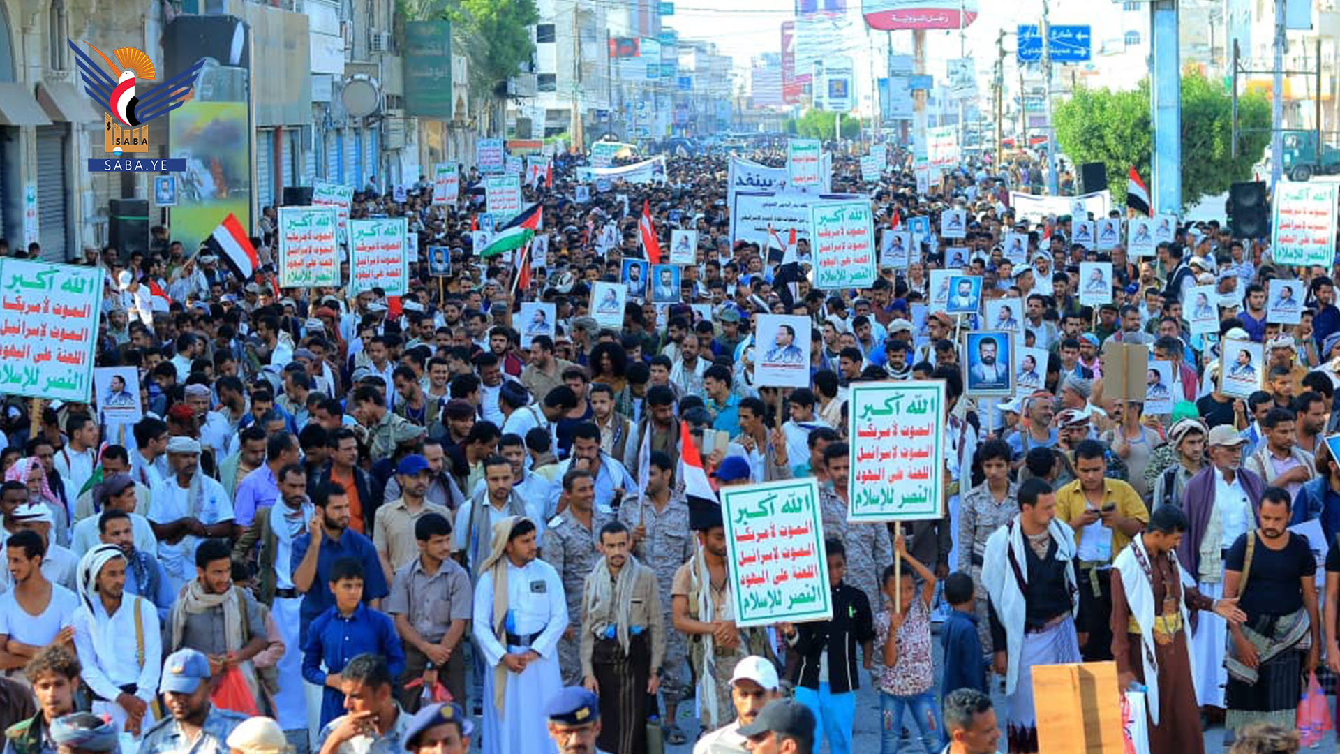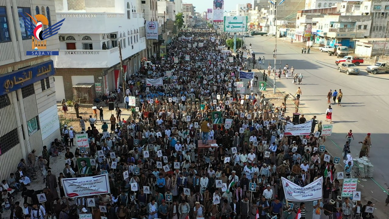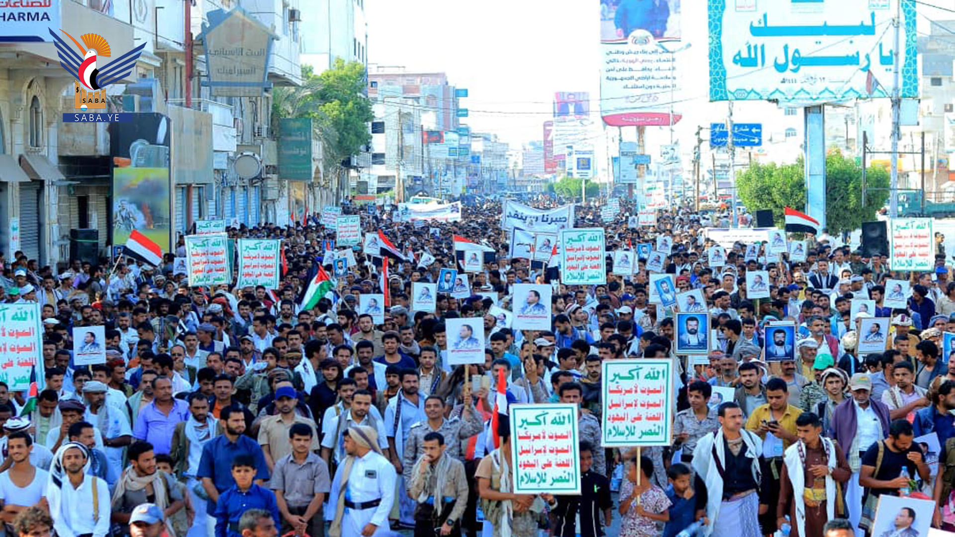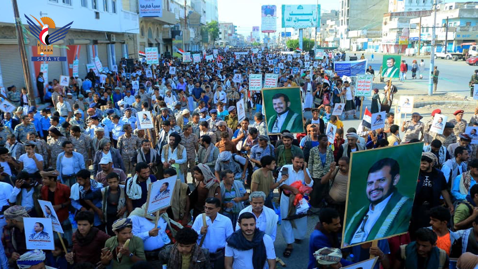 مسيرة جماهيرية حاشدة بمدينة الحديدة وفاءً للشهيد الصماد وتضامناً مع فلسطين وتحذيراً للعدوان (صور + فيديو)