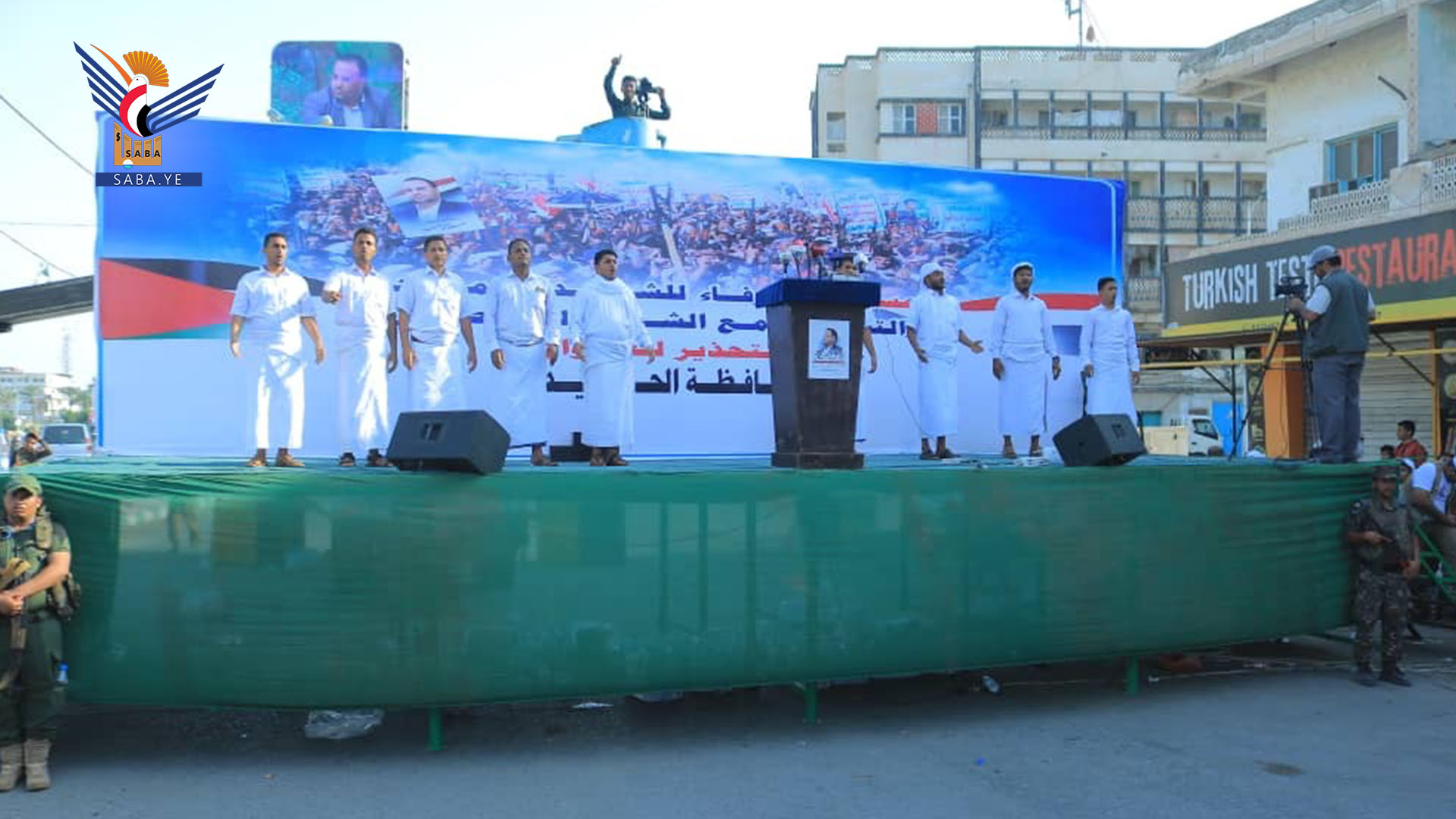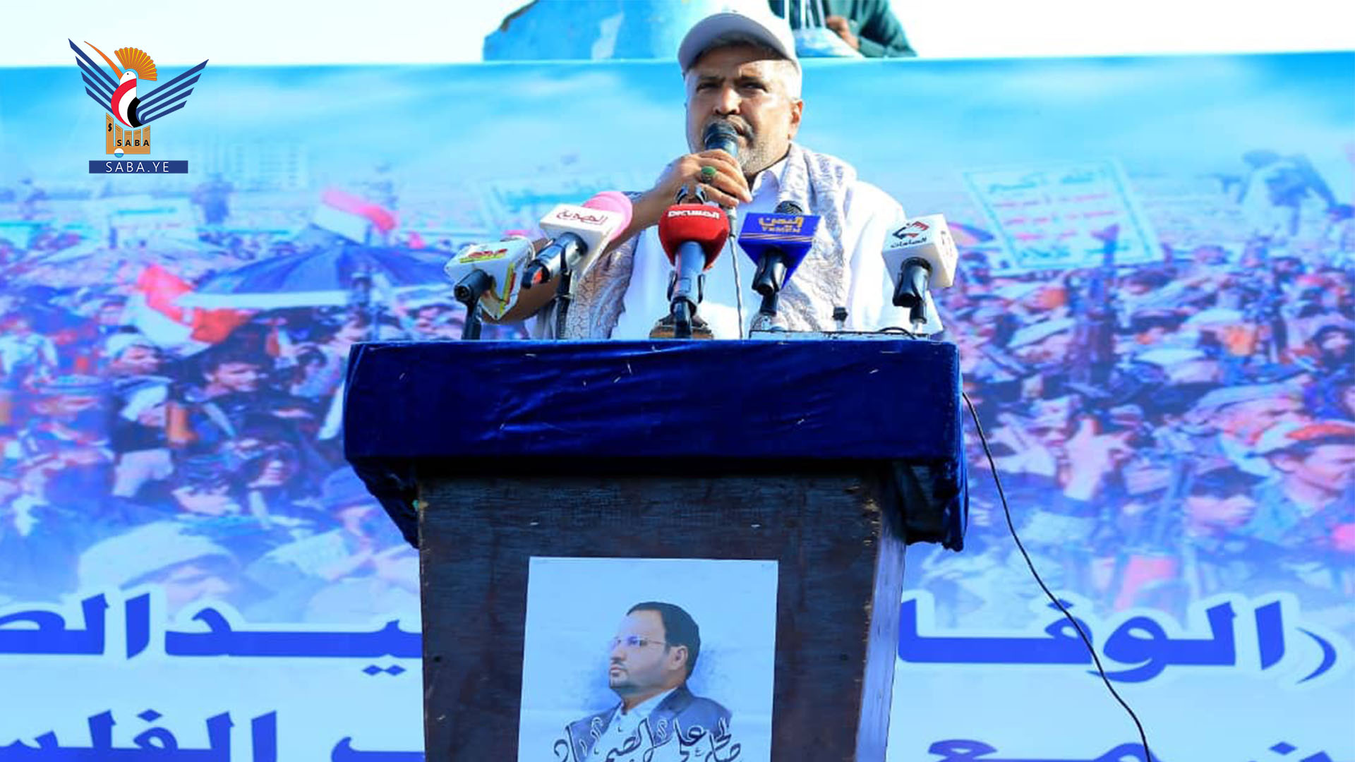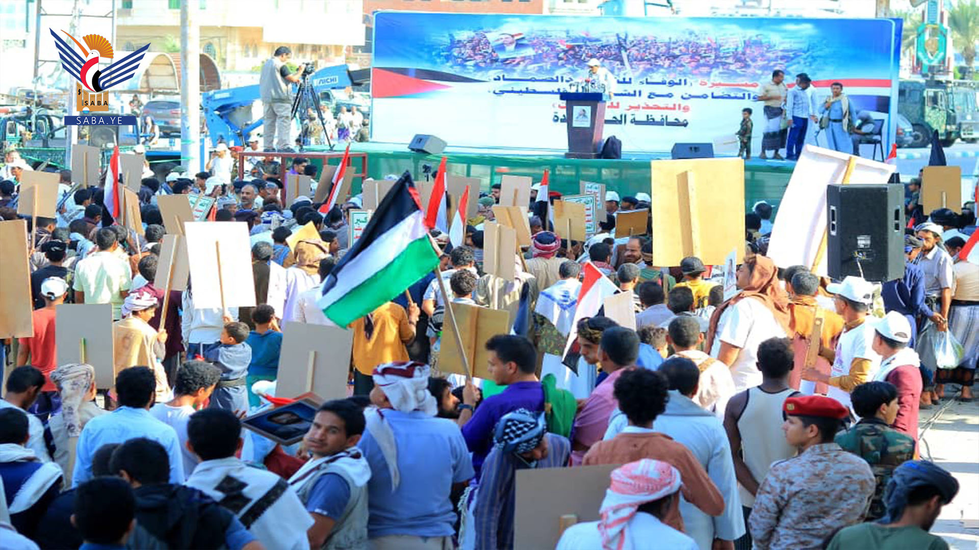 ولفت البشري، إلى أن أبناء محافظة الحديدة رغم العدوان والحصار مستمرون في الوقوف إلى جانب الشعب الفلسطيني وقضيته العادلة، تأكيداً على أن فلسطين القضية الأولى والمركزية للأمة.