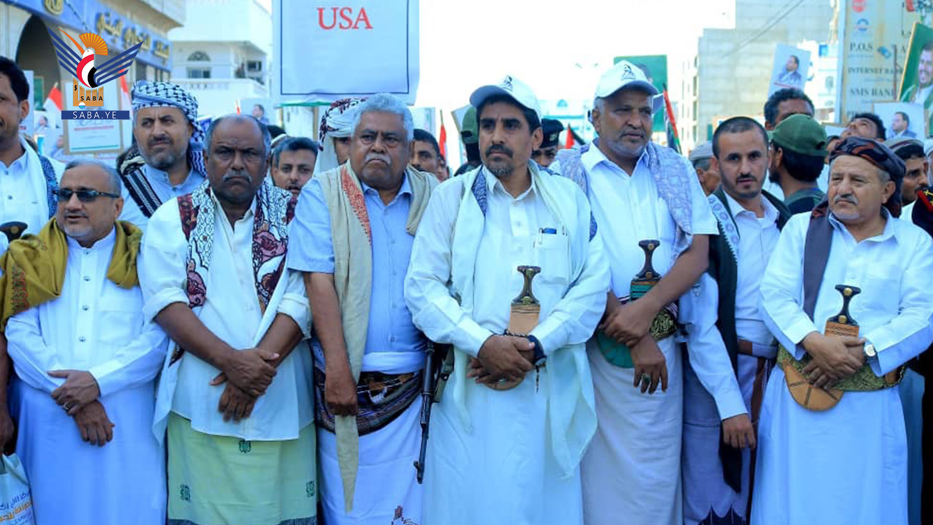 كما هتفوا بشعارات الجهاد ورفض الوصاية والحرية وتحذير العدوان من مغبة التمادي في المراوغة وعدم الاذعان لصوت السلام والخروج من المستنقع اليمني وفك الحصار الشامل ورفع معاناة الشعب اليمني ومغادرة المحافظات المحتلة.