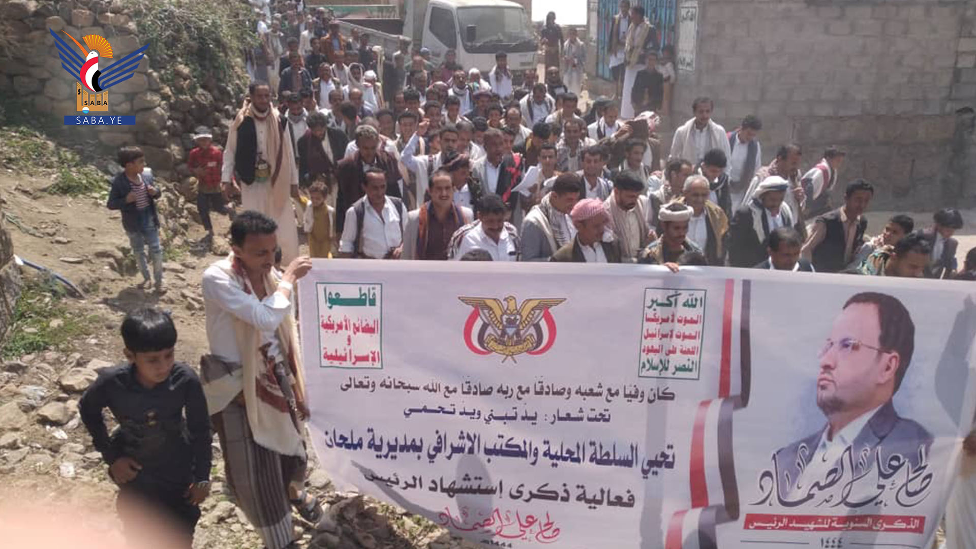 نظم أبناء مديريات الطويلة وشبام كوكبان وملحان وبني سعد والخبت وحفاش بمحافظة المحويت اليوم مسيرات جماهيرية وفاء للشهيد صالح الصماد وتضامنا مع الشعب الفلسطيني وتحذيرا لقوى العدوان.