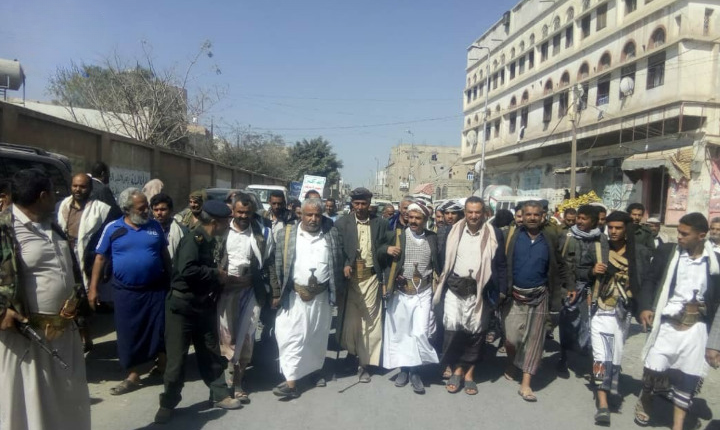 مسيرة جماهيرية في مدينة رداع وفاءً للشهيد الصماد وتضامناً مع الشعب الفلسطيني