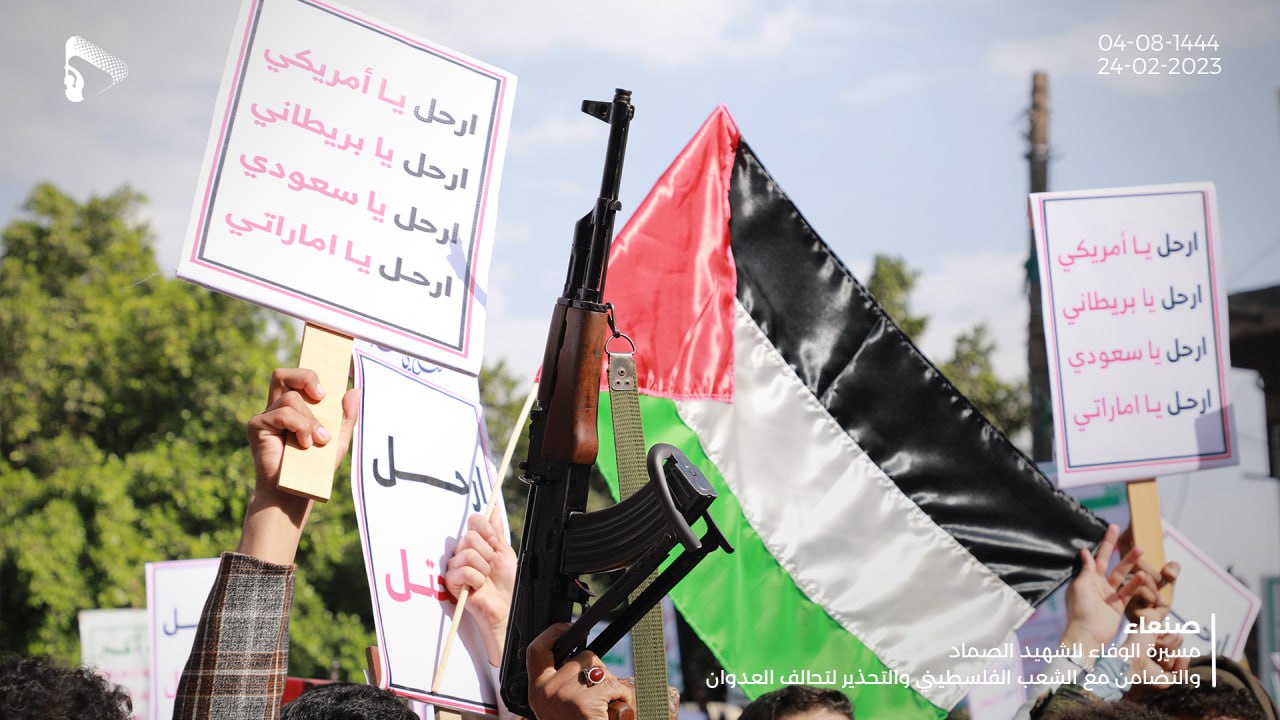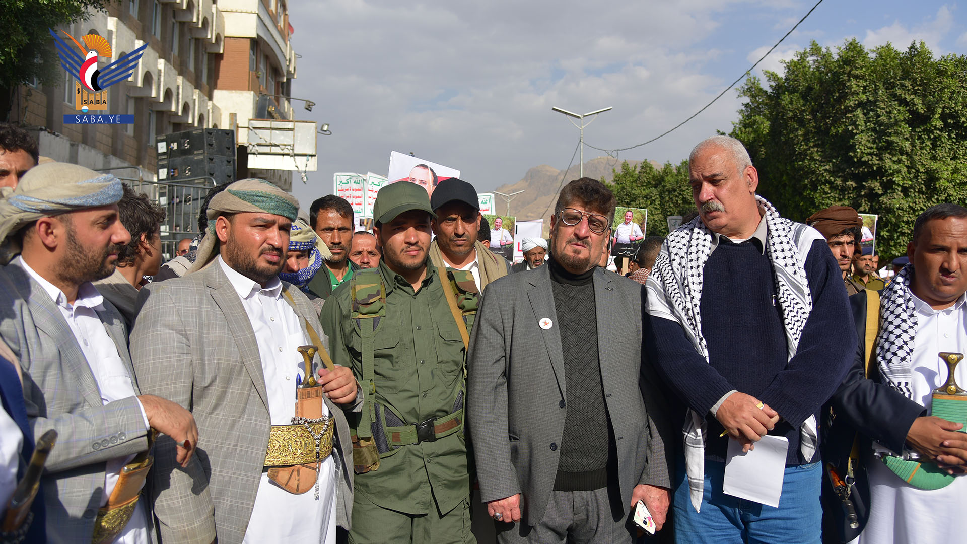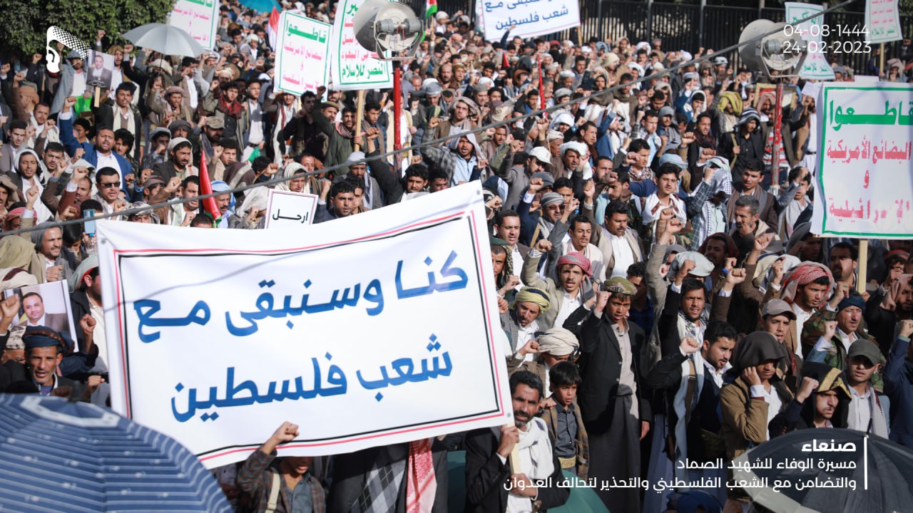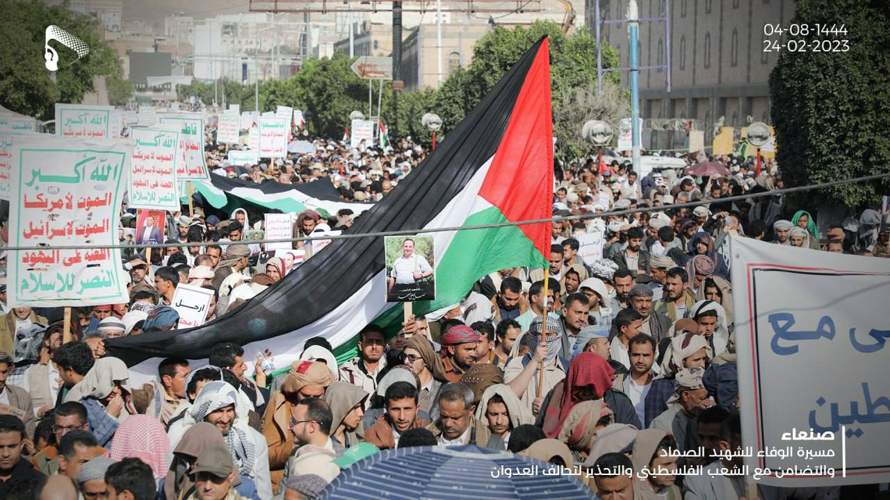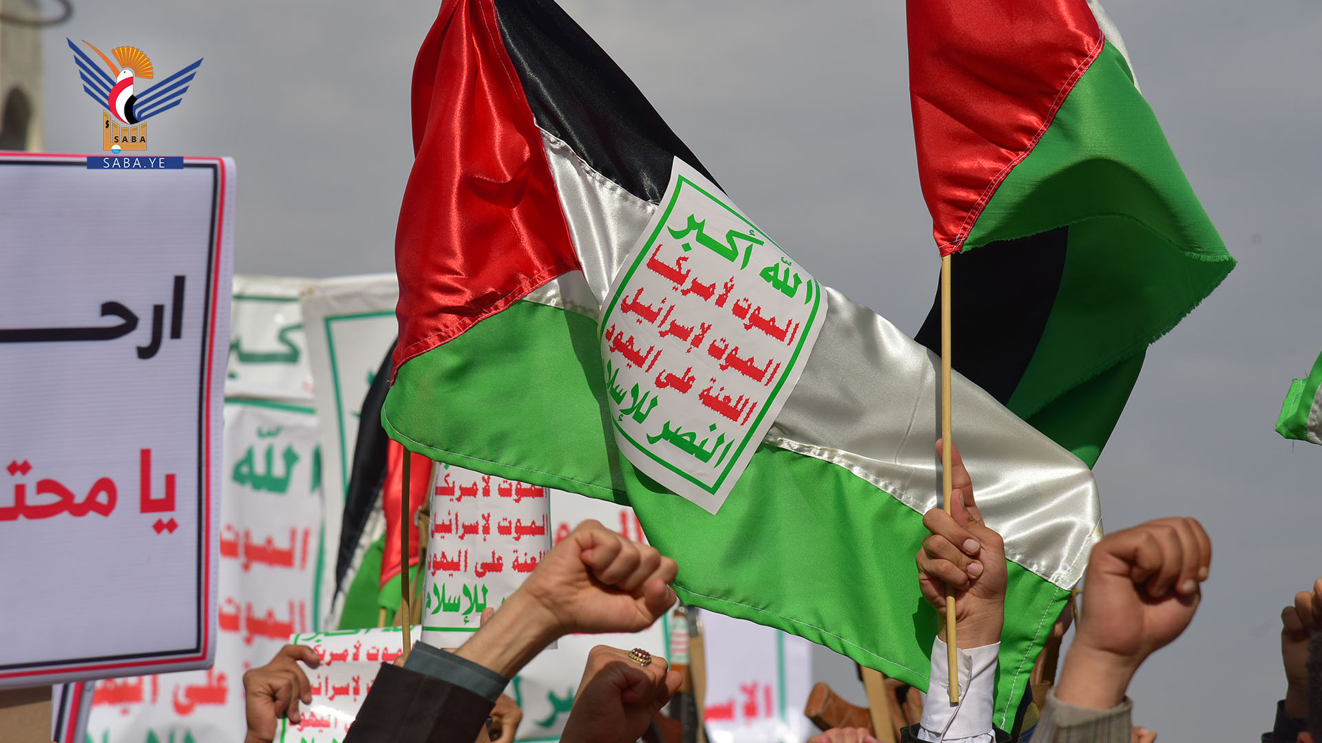 وجدد المشاركون، دعم ووقوف الشعب اليمني قيادة وحكومة وشعباً إلى جانب الشعب الفلسطيني في مواجهة غطرسة وإجرام العدو الصهيوني، حتى استعادة كامل أراضيه المغتصبة وإقامة دولته الفلسطينية المستقلة على كامل ترابه وعاصمتها القدس الشريف.
