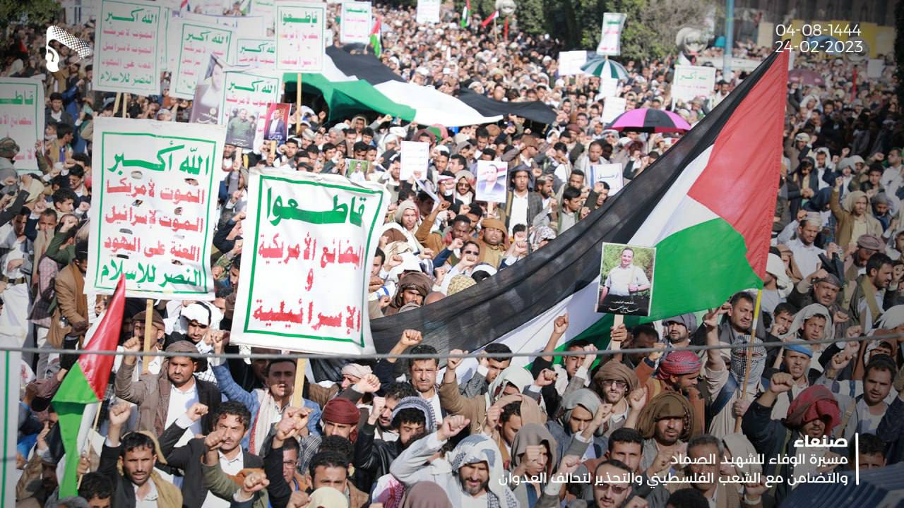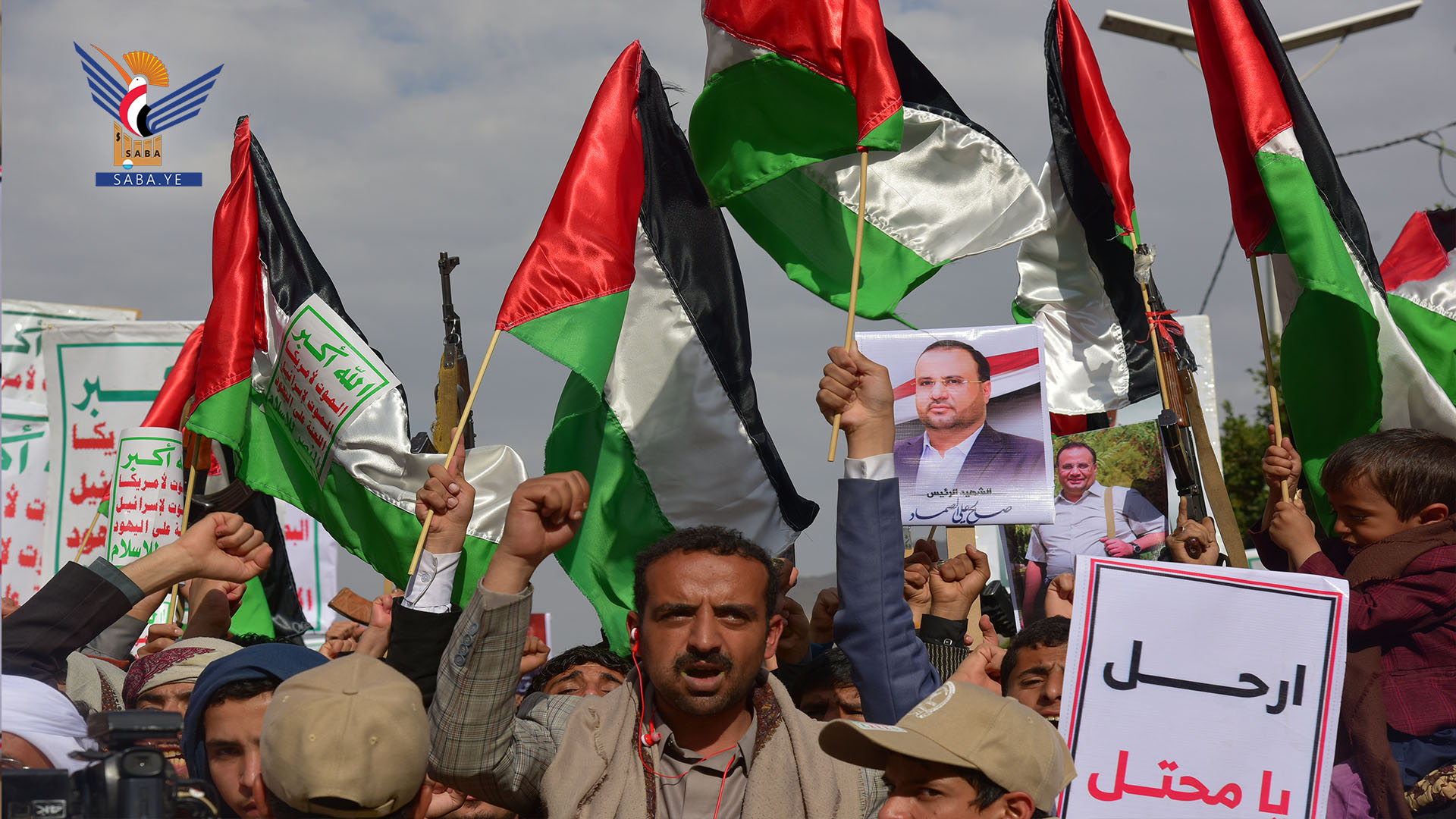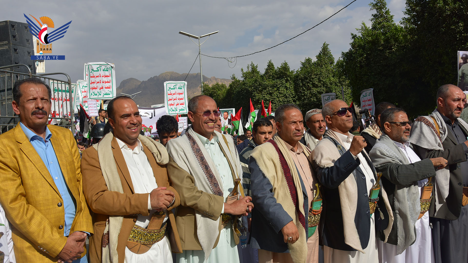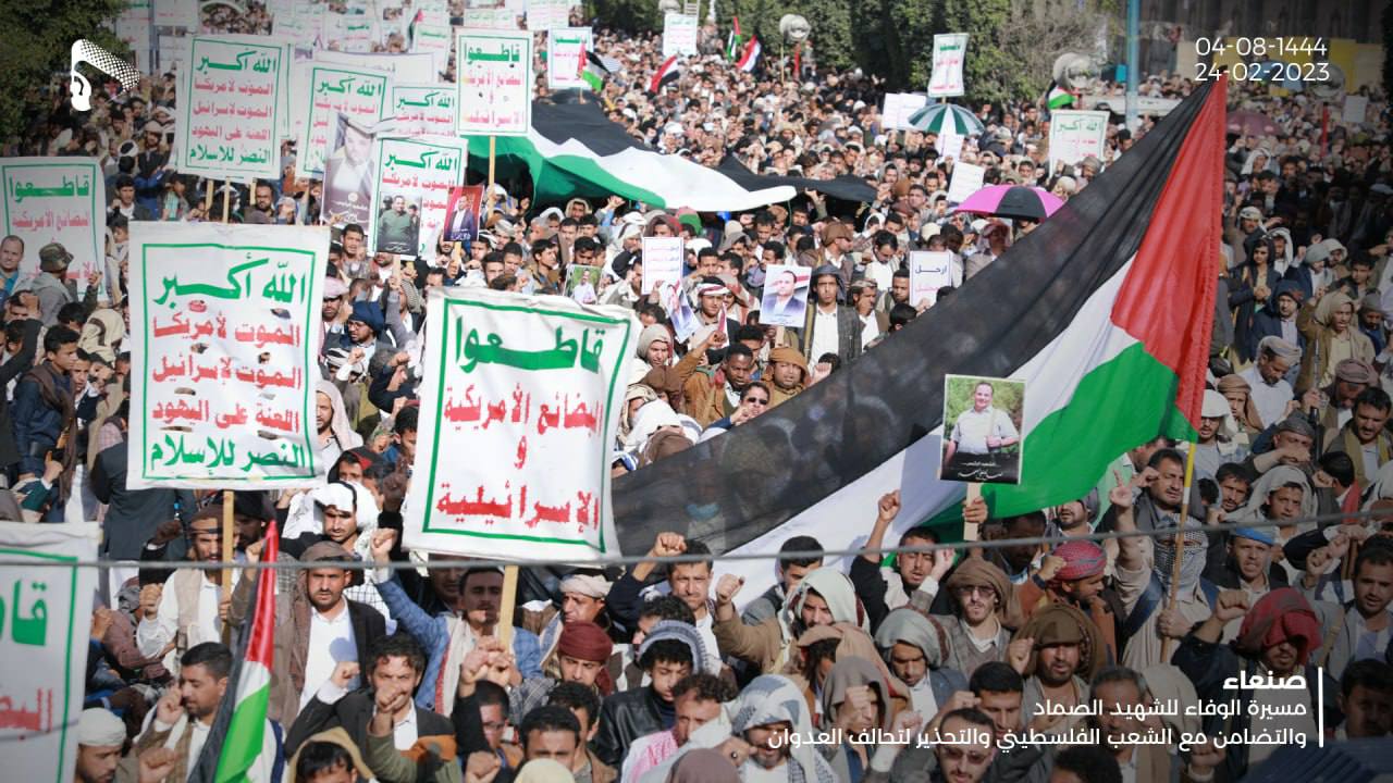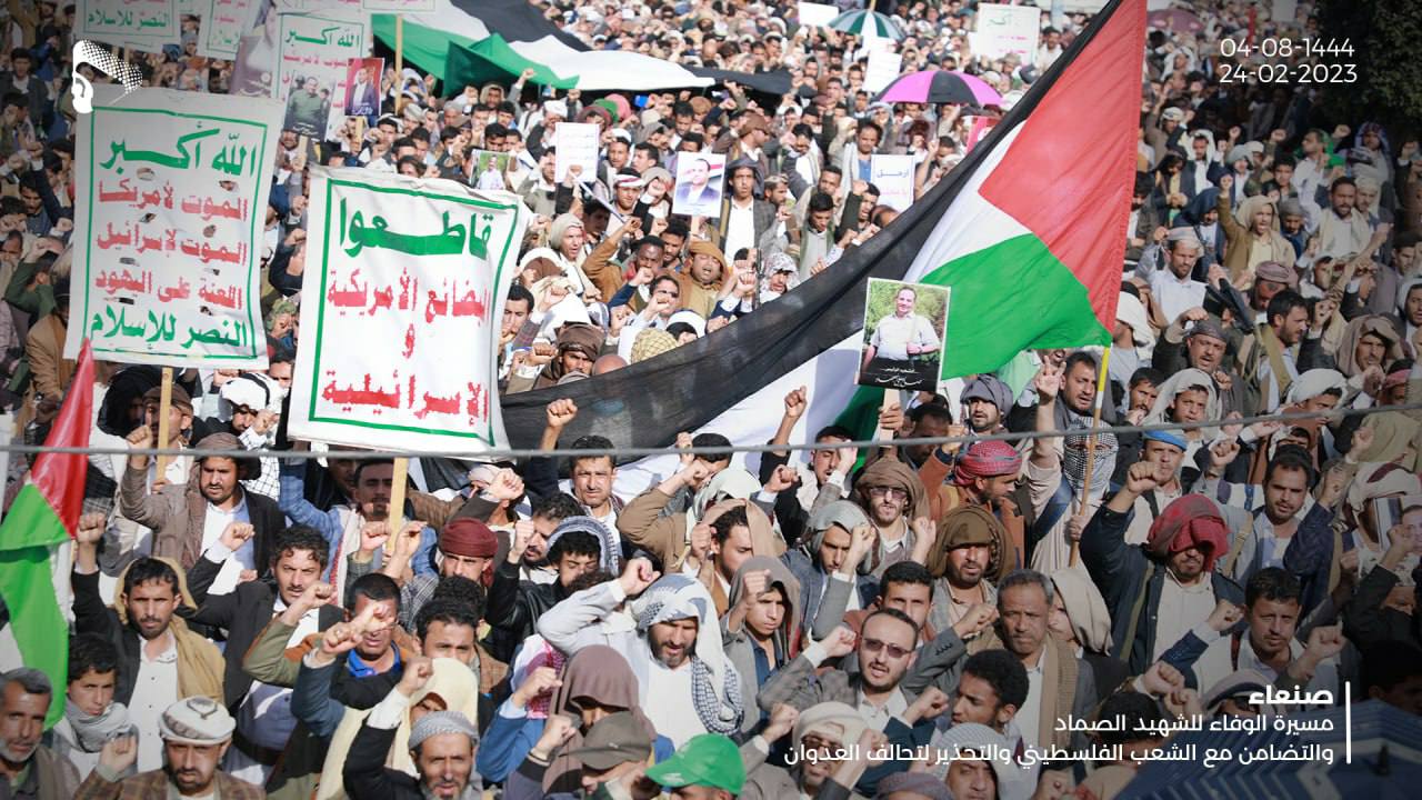 وجدد المشاركون، دعم ووقوف الشعب اليمني قيادة وحكومة وشعباً إلى جانب الشعب الفلسطيني في مواجهة غطرسة وإجرام العدو الصهيوني، حتى استعادة كامل أراضيه المغتصبة وإقامة دولته الفلسطينية المستقلة على كامل ترابه وعاصمتها القدس الشريف.