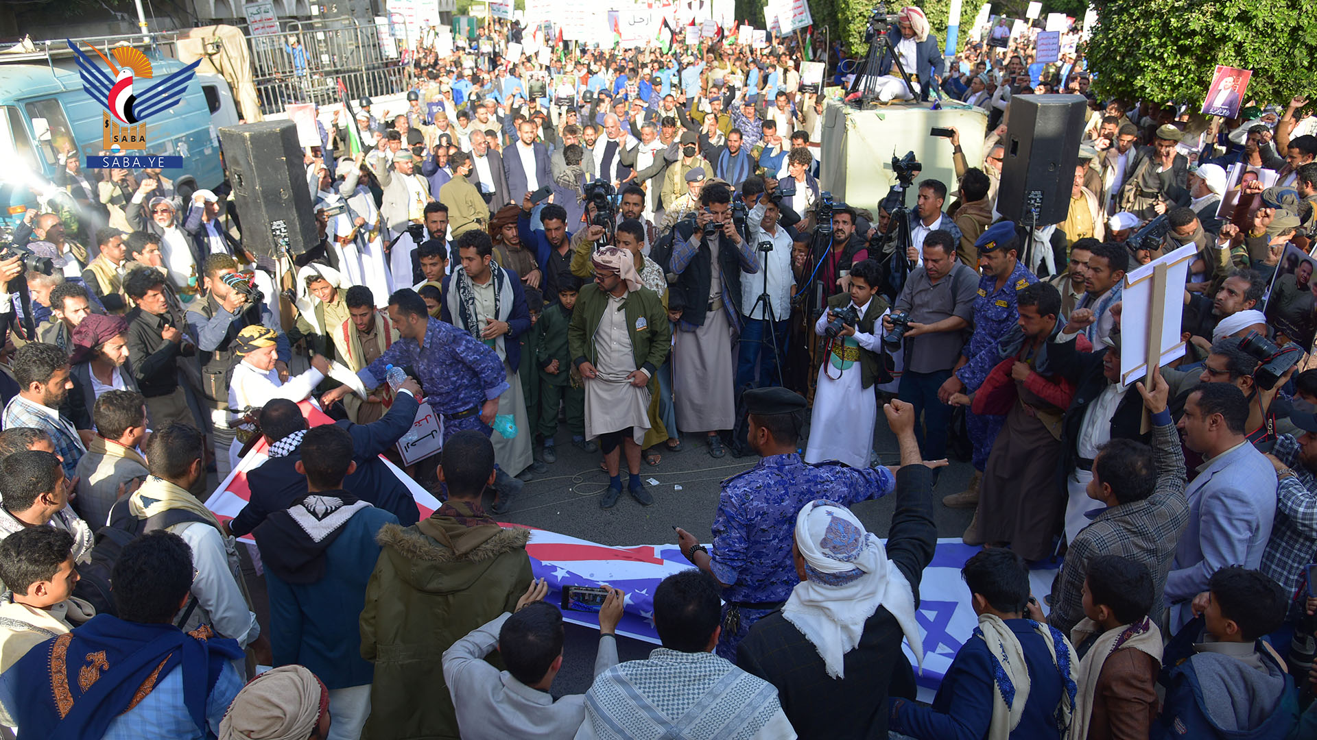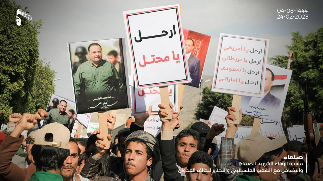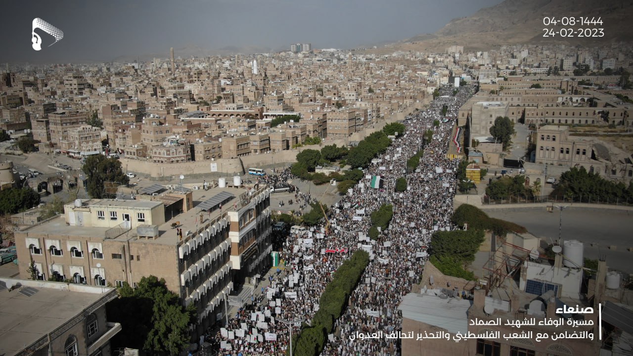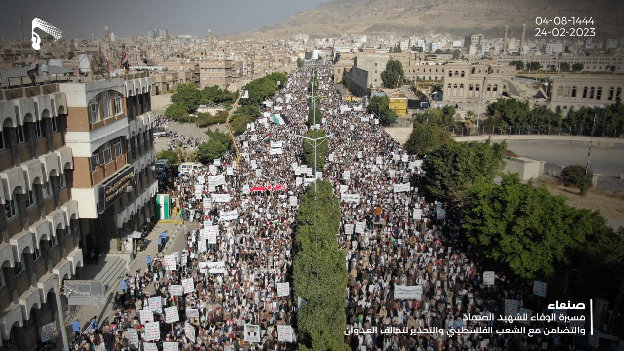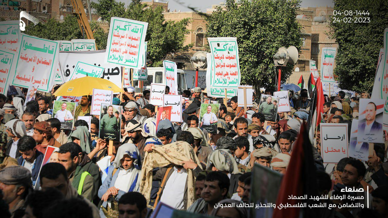وجدد المشاركون، دعم ووقوف الشعب اليمني قيادة وحكومة وشعباً إلى جانب الشعب الفلسطيني في مواجهة غطرسة وإجرام العدو الصهيوني، حتى استعادة كامل أراضيه المغتصبة وإقامة دولته الفلسطينية المستقلة على كامل ترابه وعاصمتها القدس الشريف.